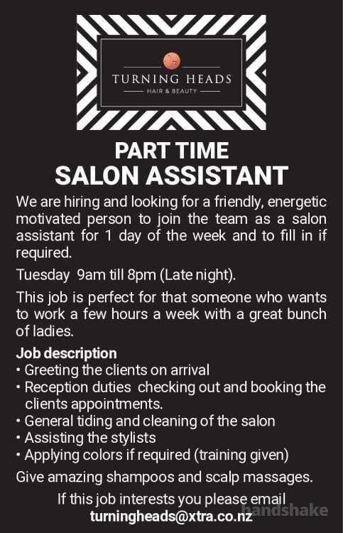 We are hiring and looking for a friendly, energetic motivated person to join the team as a salon assistant for 1 day of the week and to fill in if required.