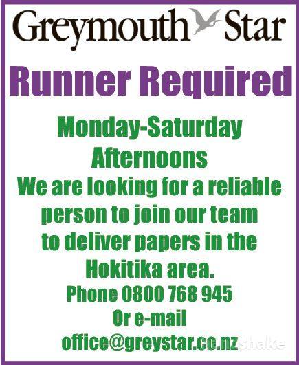 We are looking for a reliable person to join our team to deliver papers in the Hokitika area.