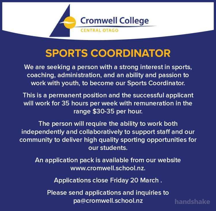 Please send applications and inquiries to pa@cromwell.school.nz