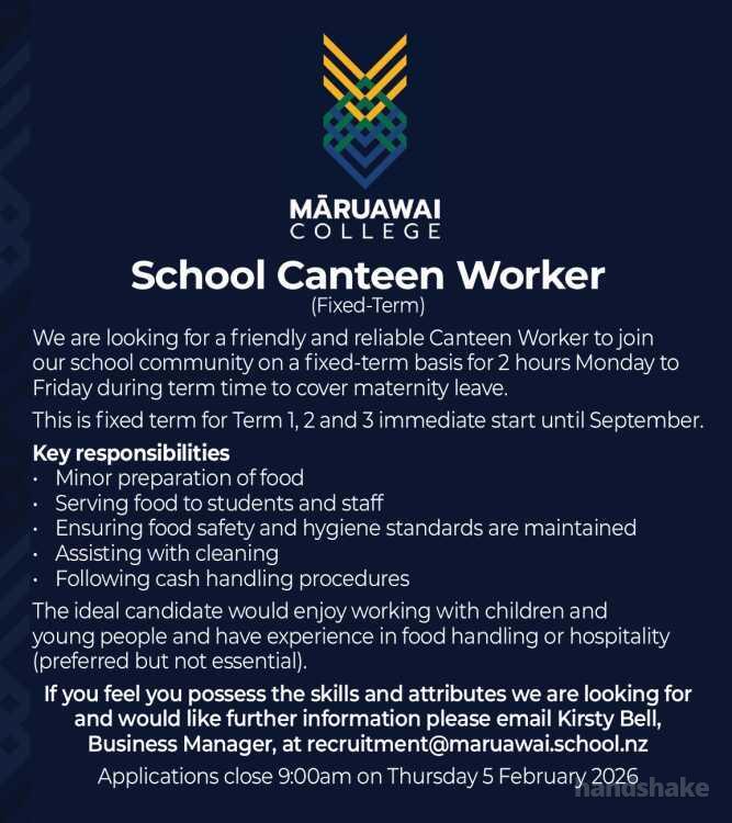Business Manager, at recruitment@maruawai.school.nz