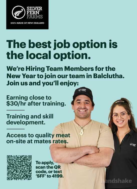 We’re Hiring Team Members for the New Year to join our team in Balclutha.
