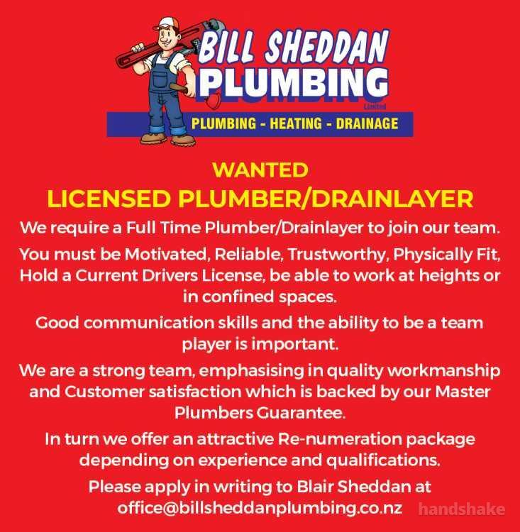 We require a Full Time Plumber/Drainlayer to join our team.