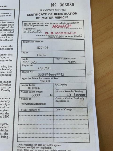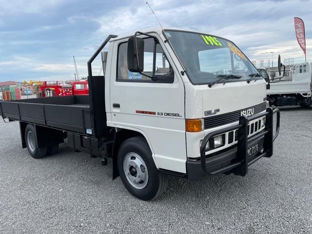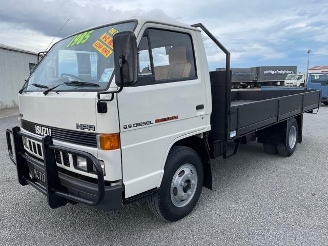 #2313: ONE OWNER, VERY LOW K’S 1985 Isuzu NPR575 3.4T LWB Flat Deck Model: Elf NPR575 Engine: 3268cc Diesel Trans: 5 speed manual Speedo: 73717km Since New Tare: 2580kg GVM: 6000kg Payload: 3420kg Wheelbase: 3360mm Tyre Size: 700x16LT Drivers Licence: Class1, Car Licence Tow-bar Capacity: 2500kg braked/certified /900kg unbraked Colour: White Deck, Timber, Drop sides, size 4400L x 2070Wx 300H. 3 SEATER Vinyl trim, Air Con, AM Radio, Adjustable Steering column Serviced & New COF included. Great Original condition throughout, Low km’s, Great value! DRIVE AWAY PRICE: $12,900 + GST We at 'O’Neill Truck Sales' present another fine example - CONTACT Bernard O'Neill M: 021 2900073 E: bernard@oneilltrucksales.com W: www.oneilltrucksales.com O’NEILL TRUCK SALES & EQUIPMENT LTD 81 BRANSTON STREET HORNBY, CHRISTCHURCH 8042 Dealer Stock No : 6a8d9e0c-1287-4c58-9a0a-05ab0 All features:$12900+GST, DECK DIMENSIONS: 4400X2070mm ID., DROP-SIDES, GVM: 6000kg, PAYLOAD: 3420kg, TARE: 2580kg GVM: 6000kg, TILT CAB, TOW-BAR, TYRE SIZE: 700X16 LT, WHEEL BASE: 3360mm ADJUSTABLE STEERING COLUMN , CLASS 2 - TRUCK LICENCE, VERY LOW K'S 3 X SEATER, INTERIOR LIGHTS, RADIO, VINYL SEATS , VINYL TRIM
