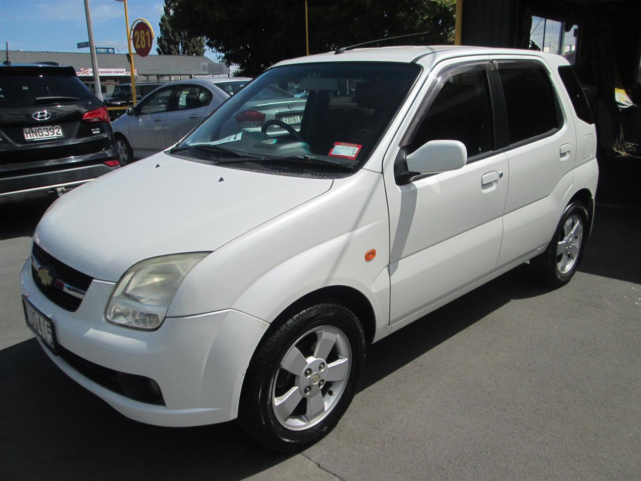 SMALL BOXY TYPE HATCHBACK WITH LOW KS. DRIVES VERY WELL AND COMES WITH NEW 1 YEAR WOF AND CURRENT REGO. BADGED AS CHEVROLET BUT USES SUZUKI PLATFORM AND RUNNING GEAR. HIGH ROOF LINE ALLOWS EASY ENTRY AND EXIT. ECONOMICAL. WORTH A LOOK FOR SMALL CAR BUYERS. FINANCE AVAILABLE. DOUG DRAKE MOTORS 281 FERRY RD CHCH. under offer!!!!!!!!!!!!!!!!!!!!!!!!!!!!!!!!!!!!!!!!!!!!!!!!!!!!!!!!!!!!!!! Dealer Stock No : 9a27069f-175f-479d-a0ca-d4fc2 All features:Alloys, Central Locking, Electric Mirrors, Rear Wiper ABS Braking, Electric Mirrors, Electric Windows, Power Steering Air Bag(s), Air Conditioning, Car Stereo, Central Locking