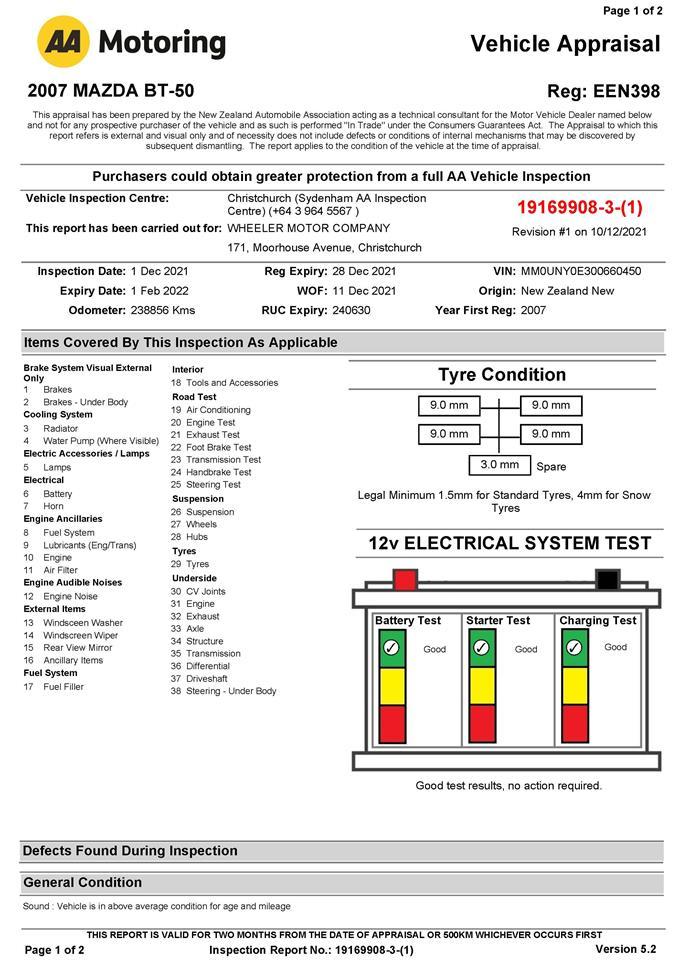 !!! 'AA' Certified Dealership !!! 2007 Mazda BT-50 3.0lt T/Diesel SDX 'NZ NEW' Great with Canopy! Clean Ute with 4 Brand New A/T Tyres! Enquire 'Today' Request a personalized video demonstration of this car sent directly to your phone, tablet or computer! We understand everyone's lives are super busy so to save you some time just ask and we will bring the car to your home digitally! NEED FINANCE? WANT A COMPETITIVE DEAL? Apply now on our website 'Wheeler Motor Company' or over the phone! Applications take just 5 minutes and we will get back to you within an hour. Easy! Call us TODAY. Welcome to 'Wheeler Motor Company' one of New Zealand's oldest family dealerships. Please spend the time to view our selection on our website for all your car buying information. We welcome any enquiry for further information, please phone or email us today! This vehicle is priced very well and includes: -'AA' Certified Dealership -Registration -New WOF -RUC Up To Date -3 Month Warranty -Oil And Filter Service -North Island Delivery $495 -South Island Delivery $295 Delivery within NZ within 7 business days to your door! For any further information please phone or email us today! Click on our logo to visit our website for more information! -3.0lt T/Diesel Engine -5 Speed Manual -Factory Alloys with New Tyres -Airbags -NZ NEW -Canopy -Remote Locking key -ABS Brakes -Power Steering -Air-Conditioning -Stereo -Central Locking -Easy Pay Finance Available -Trade In's Welcome Wheeler Motor Company WILL trade your car! Ring us Today to discuss your Trade-in and arrange a demonstration! Central Christchurch! Dealer Stock No : ffb9aaa8-3e06-4a51-8379-fc3a3