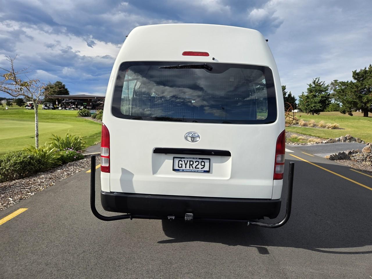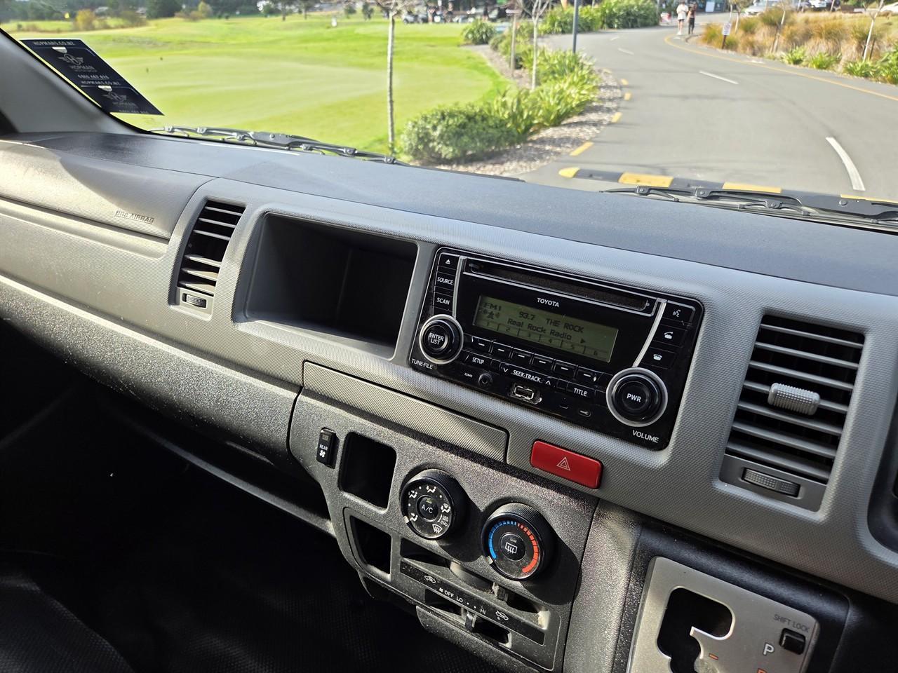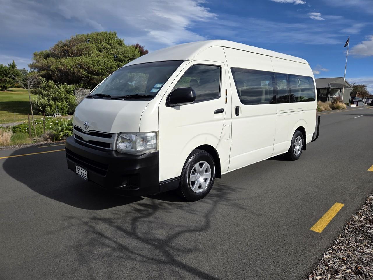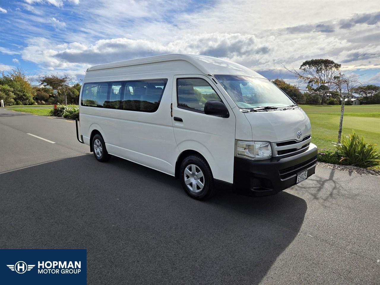 NZ New 2013 Toyota Hiace 12 Seat Minibus - 3.0 Turbo Diesel, automatic, 2WD, very popular commuter. Excellent condition inside and out. Well maintained van. Features fully independent heating and cooling in rear of cabin. Price includes fresh WOF, service, all on road costs (6 months registration, 2000km RUC) and 3 month MTA warranty. Best price, quality and service guaranteed. Why you should consider Hopmans for your new Toyota Hiace - On road costs are included in price (6 months registration, 2000km RUC) - High quality product at competitive pricing - 3 month no excess MTA warranty - We are an MTA & AA Assured car dealer - Family owned and operated business - 32 years and counting - Knowledgeable and friendly staff with a no pressure sale environment - Full after sales service at our workshop Hopman Motors - AA/Jevic Odometer Certified - All vans are serviced, oil and filter replaced - Includes band expander for NZ FM/AM frequencies - AA Appraisals are available at your request - We can trade your vehicle regardless of age or condition - Subsidised vehicle delivery to anywhere in the country - Onsite finance available at competitive rates - We also offer the following add-ons for your new Hiace at competitive pricing: - Bluetooth Hands Free - Multifunction Navigation Unit - CD Player with AUX/USB - 5 Star Alarm System - Parking Sensors - Reversing Camera - Tow bar - Nudge bar - Cargo barrier - Heavy duty roof racks - Window tinting - Vehicle sign writing - Extended Mechanical Breakdown warranties with NZ’s leading warranty provider Autosure. Keywords: Regius ace Keywords: Regius ace 12 seater commuter coach minibus minivan 12 seat zx jumbo mobility wheelchair conversion camper conversion campervan coach 12 seater Dealer Stock No : 0b64752d-b2e7-42f8-a5cf-fe163 All features:ABS, Air Bags, Air Conditioning, Bluetooth, CD Player, Central Locking, Electric Mirrors, Electric Windows, Power Steering, Rear Wiper, Remote Locking, Reversing Camera, Tow Bar