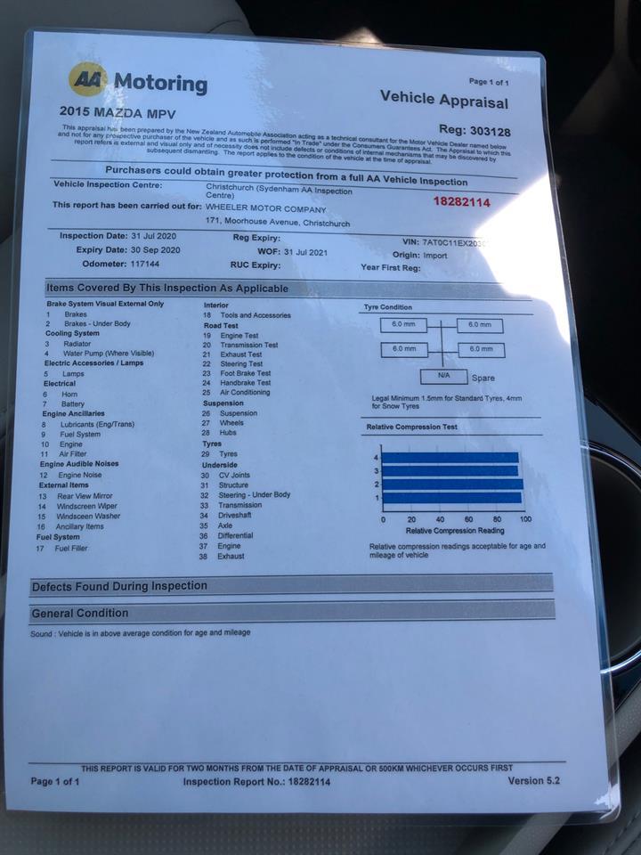!!! 'AA' Appraised & 'AA' Certified Dealership !!! 2015 Mazda MPV 23S 'Facelift' Leather Package 7/8 Seater! Rare Find, Super Late Model Mazda MPV 23S! Full leather, Heated Seats, BOSE Sounds, Electric Rear Gate, Dual Power Sliding Doors and more! Enquire 'Today'! Sale now on! But finishes 'Sunday'! Was $18989, Now Just $17500+orc! NEED FINANCE? WANT A COMPETITIVE DEAL? Apply now on our website 'Wheeler motors' or over the phone! Applications take just 5 minute and we will get back to you within an hour! Easy! Call our business finance manager today! The Mazda MPV 23S is just such a nice car to drive! powerful but economical, and just so good looking! Hard to find this high grade edition in such a late model! This 'can' be your new car today! Enquire on our website Wheeler Motors today and make the decision to buy from one of the best dealerships in the market! Wheeler Motor company! This vehicle is priced very well which includes: -Band Expander -New WOF -'AA' Certified Dealership -'AA' Appraised -3 Month Dealership Warranty -Oil & filter Service -Odometer Certified -Free Canterbury Delivery -North Island Delivery $495 -South Island Delivery $295 Delivery within NZ within 7 business days to your door! For any further information please phone or email us today! Click on our logo to visit our website for more information! Welcome to 'Wheeler Motor Company' one of New Zealand's oldest family dealerships. Please spend the time to view our selection on our website for all your car buying information. We welcome any inquiry for further information, please phone or email us today! -Trades Welcome -5 Door -2.3lt Petrol Engine (NON TURBO) -7/8 Seater -Facelift Upgrades -Full leather -Heated Seats -BOSE Premium Sounds -Electric Seats -Dual Electric Doors -Electric Boot -SRS Airbags -Factory 18' Alloy Wheels -Adjustable Height Control Drivers Seat -ABS Brakes -Power Steering -Tiptronic Gearbox -Power Windows & mirrors -Dual Zone Climate Air-conditioning -CD/FM Stereo -Central Locking -Remote Locking Proximity Key -Driving Lights -Factory Tinted Privacy Glass -Easy Pay Finance Available -Trade in's Welcome Wheeler Motor Company WILL trade your car! Ring us today to discuss your Trade-in and arrange a demonstration! Central Christchurch! Dealer Stock No : dab7e3d6-da46-4f39-b44e-2cc35 All features:5 Doors (Newer Model), Electric Mirrors, Factory Alloy Wheels, Factory Tinted Glass, Rear Wiper, Spot Lights 200 Point Compliance Check Completed, AA Appraised, AA Certified Dealership, ABS Braking, Chain Engine (No Cambelt!), Facelift Model, Finance Available, No Cambelt, Proximity Key, Remote Locking Key, Traction Control, Trade in's Welcome 7 Seater, ABS Brakes, Airbags, CD/FM Stereo, Central Locking, Climate Control Airconditioning, Drivers Seat Height Adjustment, Electric Seats, Electric Windows, Full 7 Diagonal Seatbelts, Full Leather, Heated Seats, High Grade Trim, Leather Seats, Power Steer, Tiptronic Gearbox