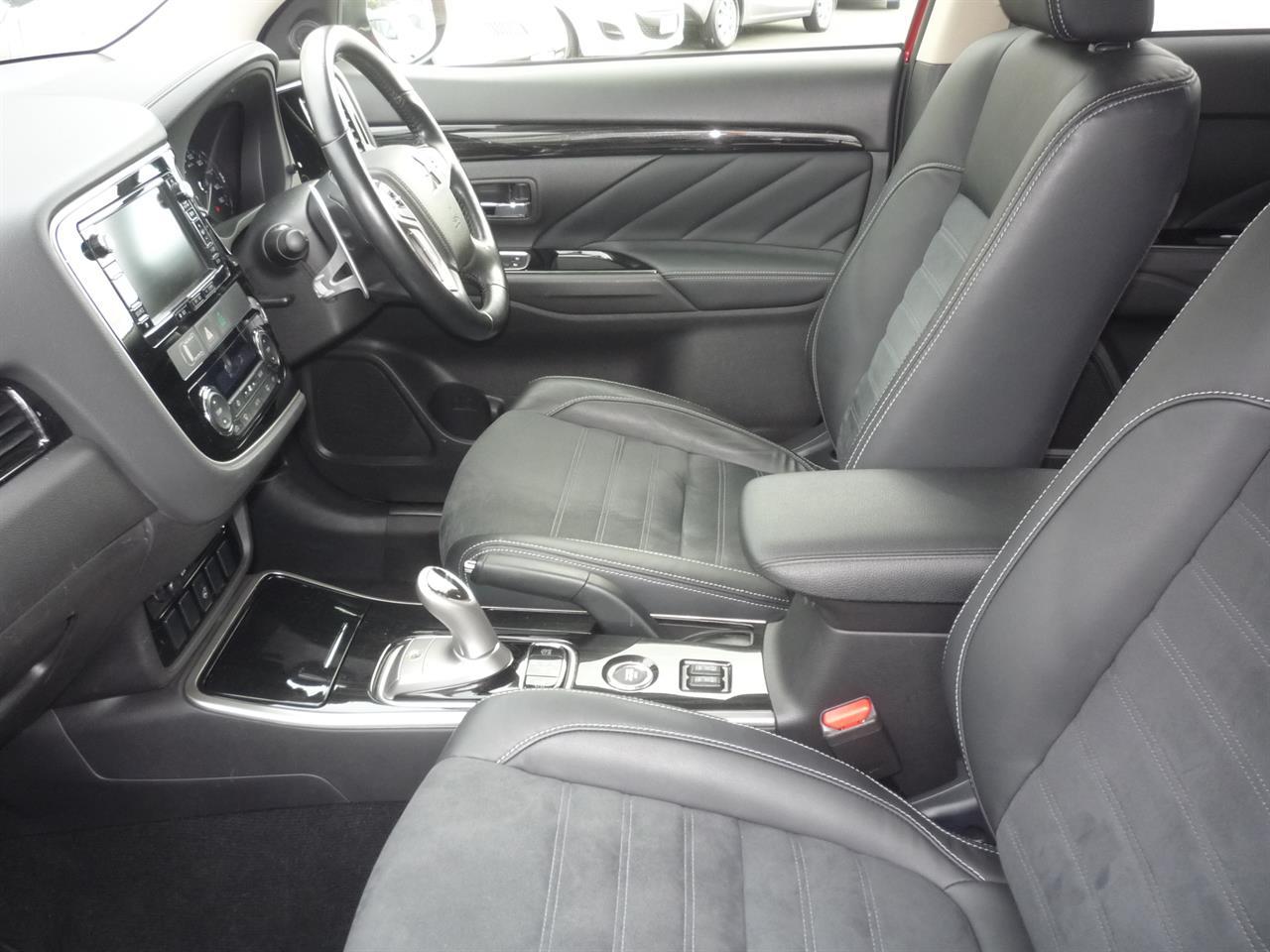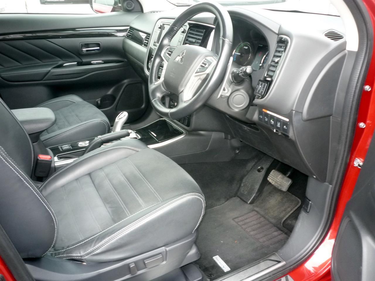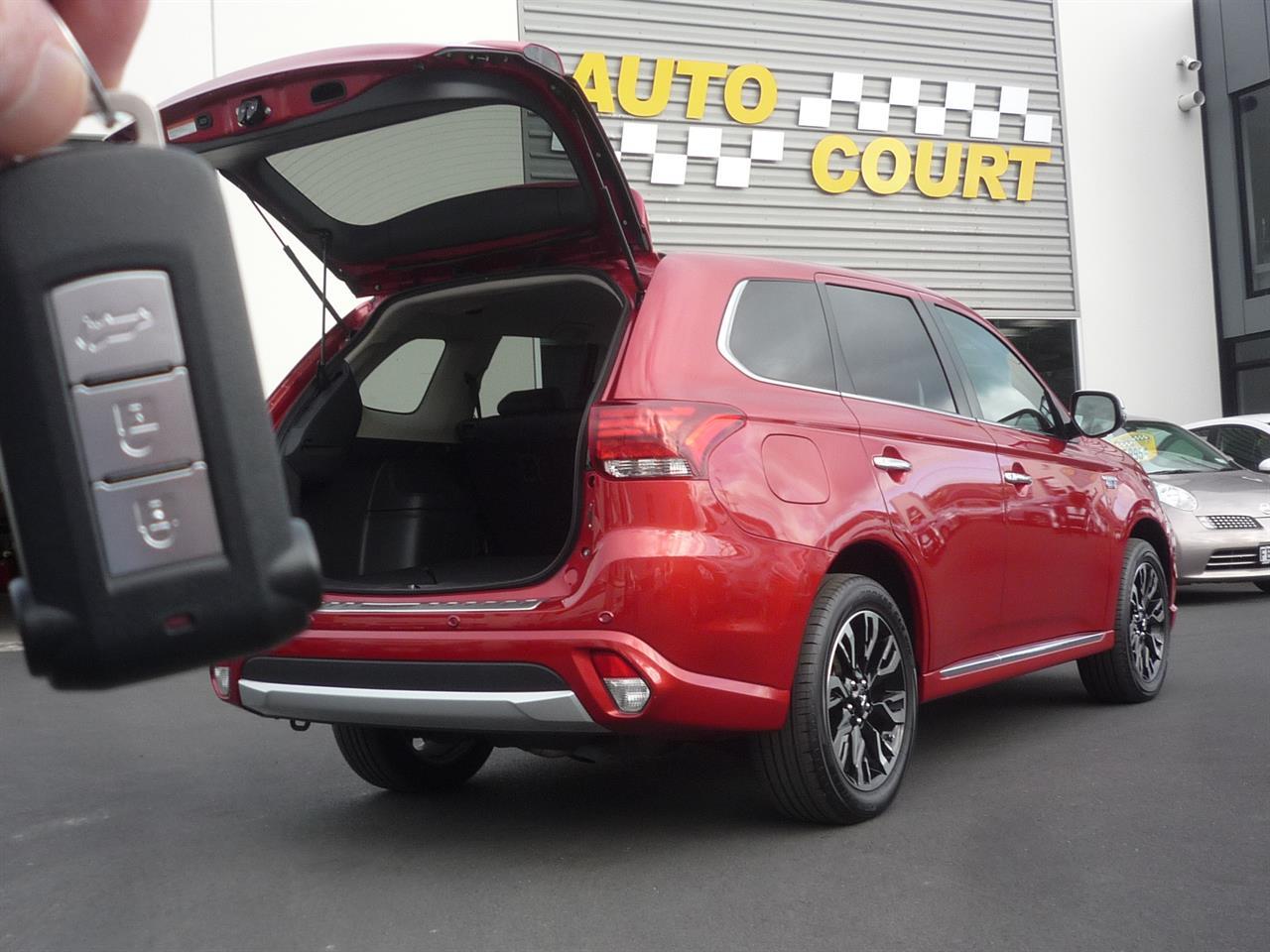Battery S.O.H. 69.75% A 2015 Mitsubishi Outlander PHEV plug-in hybrid 4WD wagon with 37,400 kilometres. This is a very smart looking wagon in red with 18 inch alloy wheels and rear spoiler. The Outlander PHEV operates in three drive modes depending on the type of driving you are doing, and moves between these modes automatically. (1) EV DRIVE MODE ELECTRIC POWER ONLY Two motors power all four wheels using electricity from the lithium-ion battery. The PHEV’s main battery can take the car up to 50 kilometres on EV power alone, with no exhaust emissions and a near-silent drive. (2) SERIES HYBRID MODE ELECTRIC POWER & ENGINE ASSISTANCE The petrol engine operates as a generator, supplying electricity to the battery which in turn powers the motors. This is an efficient use of fuel and occurs when the battery charge falls below a pre-determined level or when more power is required (overtaking, or on hills). (3) PARALLEL HYBRID MODE ENGINE POWER & ELECTRIC MOTOR ASSISTANCE The petrol engine provides most of the power, with assistance from the electric motors when required. SPECIFICATIONS INCLUDE: • HID HEADLIGHTS • TWIN MOTOR 4WD WITH OPTIONAL PETROL ENGINE ENGAGEMENT • REGENERATIVE BRAKING • RAPID CHARGING 30min (charges up to 80%) AND TRICKLE CHARGING 4hr • CLIMATE CONTROL • ALL WHEEL DRIVE • 18"ALLOY WHEELS • ASC ACTIVE STABILITY CONTROL • ABS WITH EBD ELECTRONIC BRAKE FORCE DISTRIBUTION • e-ASSIST SYSTEM which includes:* * FCM FORWARD COLLISION MITIGATION SYSTEM * LDW LANE DEPARTURE WARNING * ACC ADAPTIVE CRUISE CONTROL • 7 AIRBAGS • PART LEATHER UPHOLSTERY WITH HEATED FRONT SEATS • HEATED STEERING WHEEL * RADIO/CD/360 DEGREE AROUND VIEW MONITOR * STEREO & DASH CONVERTED TO ENGLISH BUT RETAINS EV FUNCTIONS * HANDS-FREE TAILGATE All enquiries are welcome and we can arrange transportation to most parts of New Zealand. -------------------------------------------------- Opening Hours: Monday to Friday: 8:30am - 5:30pm Saturday: 10am - 4pm Sunday: 1pm - 5pm Dealer Stock No : 372f8118-f00d-4698-b7e0-c9567 All features:Alloy wheels, Electric Mirrors, Power-operated Hatch, Spoiler 2.0 litre Plug-in Hybrid, ABS Braking, All Wheel Drive, Centre diff lock, Cruise Control, Forward Collision Mitigation, Lane Departure Assist, Power Steering, Stability Control, Traction Control, Twin 60kW Electric Motors "Smart Key" Operation, 360° Around-View Monitor, 7 Airbags, Central Locking, Climate Control, Electric adj driver's seat, Electric Windows, Heated Front Seats, Heated Steering Wheel, Immobiliser, Keyless Entry, Part-leather Trim