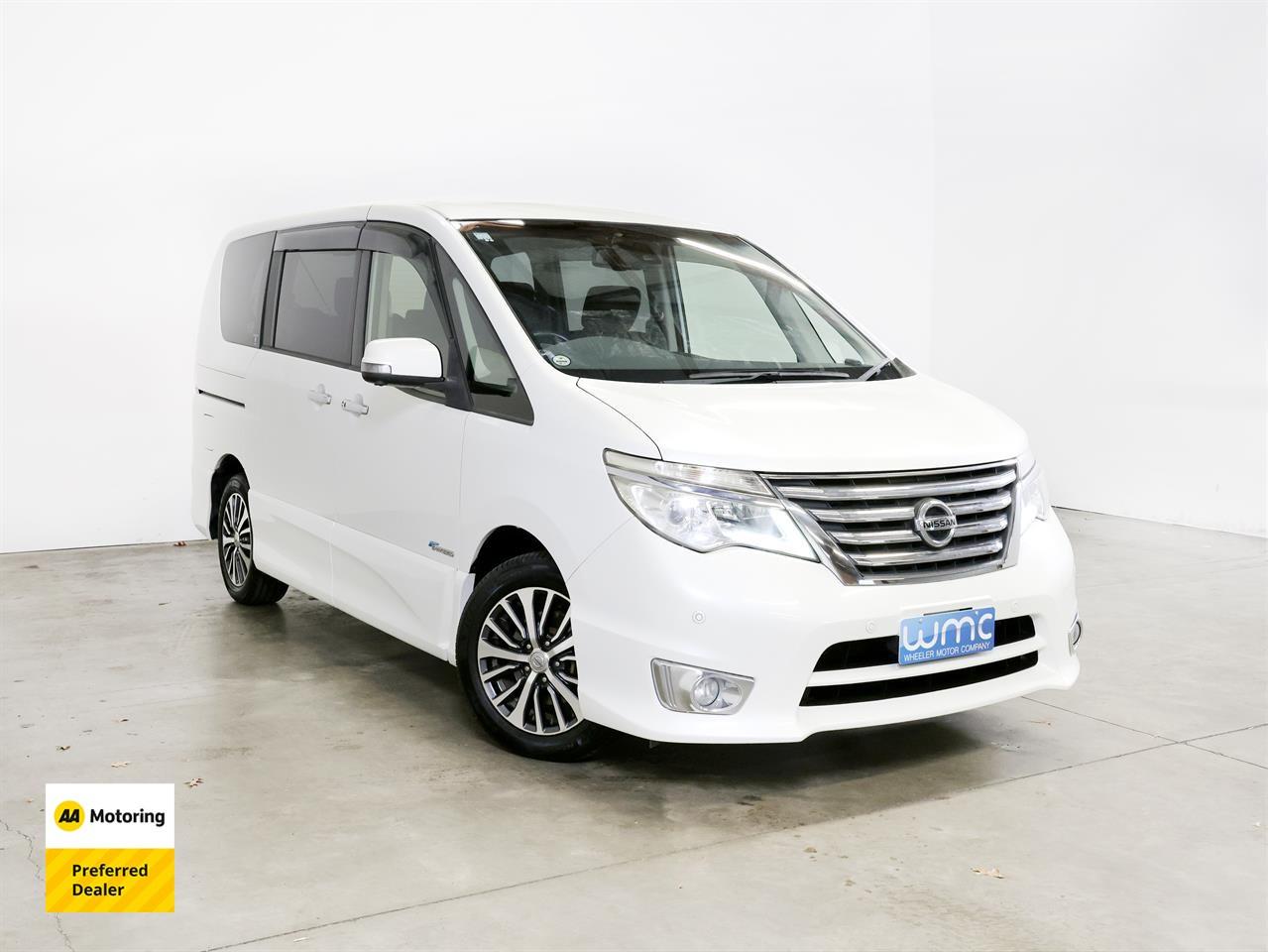 Welcome to Wheeler Motor Company! - Located at 171 Moorhouse Ave, Central Christchurch - Wheeler Motor Company is Canterbury's first 'AA' Preferred Dealership so you can be fully assured that your new car is simply the best it can be! 2015 Nissan Serena Hybrid 'Highway Star' V Selection Offering enhanced fuel efficiency with it's 2.0lt e-POWER Hybrid Engine, the Nissan Serena offers 8 Seater practicality and smart technology! Helping to protect all your occupants, this 'Highway Star' V Selection model is equipped with Lane-Departure Warning and Pre-Crash Safety. Ensuring everyday convenience with Dual Power Sliding Doors for easy cabin access, and Reverse/360 Degree Cameras and Parking Sensors for navigating tight spaces! Enquire 'Today' to secure a Test Drive! Request a personalized video demonstration of this car sent directly to your phone, tablet or computer! We understand everyone's lives are super busy so to save you some time just ask and we will bring the car to your home digitally! Financing your new car? Simply get in contact with one of our on-site Finance Consultants, either by phone or using our Online Finance Application. We will contact you within the hour and tailor the best Finance Package suited to your unique situation. Wheeler Motor Company is one of New Zealand's oldest family dealerships. Please take the time to view our selection of cars. This vehicle is priced competitively and includes the following: -'AA' Certified Dealership -'AA' Appraisal Available on Request -200 Point Vehicle Compliance Inspection Completed -Band Expander -New WOF -Registration -Extended Warranty Protection Available -Oil and Filter Service -Nationwide Delivery Available - Just Ask Us How! This can be your new car today! Enquire on our website Wheeler Motors ‘Today’! -Trade ins/Part Exchange Welcomed -2.0lt Hybrid Engine -Automatic Transmission -'Highway Star' V Selection -Alloy Wheels -Dual Power Sliding Doors -Factory Tinted Privacy Glass -Parking Sensors (Front + Rear) -Cruise Control -Pre-Crash Safety -Lane-Departure Warning -Cloth Interior -Airbags -FM/AM Stereo -Reverse/360 Degree Parking Cameras -Push Button Start -7 Full Diagonal Seatbelts -Climate Control Air-Conditioning -Easy Pay Finance Available Have a trade? Our dedicated buying team will be able to offer you our best price possible! Ring us ‘Today’ to discuss your Trade-in and arrange a demonstration! Wheeler Motor Company Now Accepts Crypto Payment. Dealer Stock No : f178d6d0-b044-45cb-a5d4-88407
