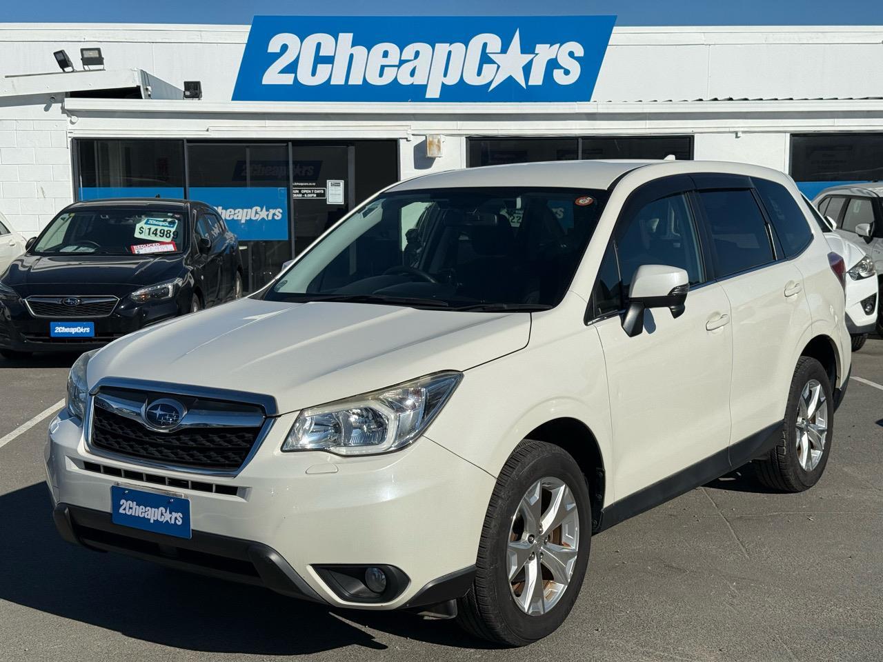 2015 Subaru Forester AWD – Spacious SUV with confidence A practical and capable SUV, this Subaru Forester in white with black-grey interior offers comfort, space, and all-wheel-drive security. Perfect for both city driving and family trips, with features designed to make every journey easier. ? AWD – grip and confidence on all roads ? Cruise Control – effortless long-distance driving ? Reversing Camera – stress-free parking ? Paddle Shift – sporty control when you want it This Forester combines Subaru’s reliability with a roomy interior and everyday practicality. Available now at Christchurch Why choose 2 Cheap Cars to find your next car? We are 100% Kiwi owned and operated. We've helped OVER 100,000 Kiwis find their dream cars. Each car is carefully hand selected and inspected by our highly experienced buyers based in Japan! 13 locations nationwide from north to south. All our vehicles are fully inspected and serviced all for your peace of mind and so we can ensure the quality of the cars we sell are 100%! FINANCE: We have finance options available to suit your needs. Apply on our website or in one of our branches and we will take it from there. We have competitive rates on offer even if you already have your finance sorted! Come have a chat with one of our team today! INSURANCE: Our products have been developed with everyday Kiwis in mind including all the necessary cover while still being easy to understand and most importantly protecting your customers and their families lifestyle and vehicles in times of loss. OPENING HOURS: We are open 7 days a week, 10am - 6pm. Select stores may differ, please check our website for more information. We can quote to ship nationwide! All our cars are priced to sell, and are sold on a FIRST COME, FIRST SERVED basis. Prices exclude on road costs. * Details of finance (including weekly repayments, the total amount repayable over the term of the loan, interest rate, and any applicable fees) can be confirmed with a detailed quote with the dealership. Full disclosure of all the terms of your finance will also be provided to you in the disclosure statement for your consideration prior to confirmation of your purchase. All finance is subject to Finance Now's terms and conditions and approval criteria. 2CheapCars Dealer Stock No : dee1534a-0c70-4f06-9e9f-8f7e6 All features:Electric Mirrors, Electric Windows, Mag Wheels, Rear Wiper ABS Braking, Alloys, AWD, Chain Driven, Cruise Control, ESC, Paddle Shift, Power Steering, Remote locking, Reversing Camera Air Bag(s), Air Con, Air Conditioning, Bluetooth, CD Player, Central Lock, Radio