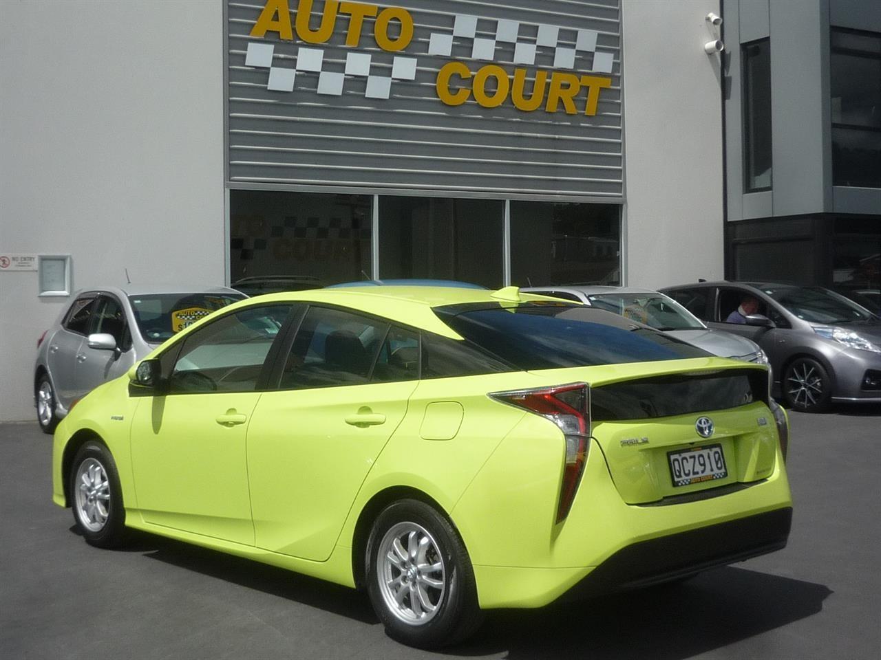 Outstanding!! An immaculate 2015 Toyota Prius E 5 door hatch in Lime Green Pearl, with 15 inch alloy wheels and rear spoiler, which has travelled 64,600 kilometres. The 1.8 litre petrol engine develops 73kW and the electric motor develops 53kW, so performance is quite good with a 4.5-star fuel economy, 3.5L/100km rating. The Prius comes with six airbags, electronic stability control, NZ CD player, Bluetooth, GPS, rear-view camera, and keyless start, plus a 5-star VSRR safety rating. An outstanding looking car! ############################## All enquiries are welcome and we endeavour to answer promptly. You are invited to call in to our Dunedin premises to inspect our range of imported and NZ new vehicles. -------------------------------------------------- Opening Hours: Monday to Friday: 8:30am - 5:30pm Saturday: 10am - 4pm Sunday: 1pm - 5pm --------------------------------------------------- ############################### Dealer Stock No : 0bc18efc-cd43-48c4-8b37-96b9c All features:Alloy wheels, Electric Mirrors, Spoiler 1.8 litre Hybrid, ABS Braking, Power Steering, Stability Control, Traction Control "Smart Key" Operation, 6 Airbags, Bluetooth, CD Player, Central Locking, Climate Control, Electric Windows, GPS Navigation, Immobiliser, Keyless Entry, Rear-view Camera