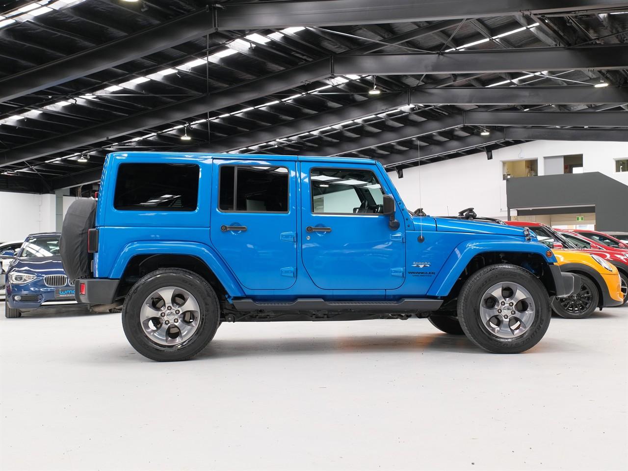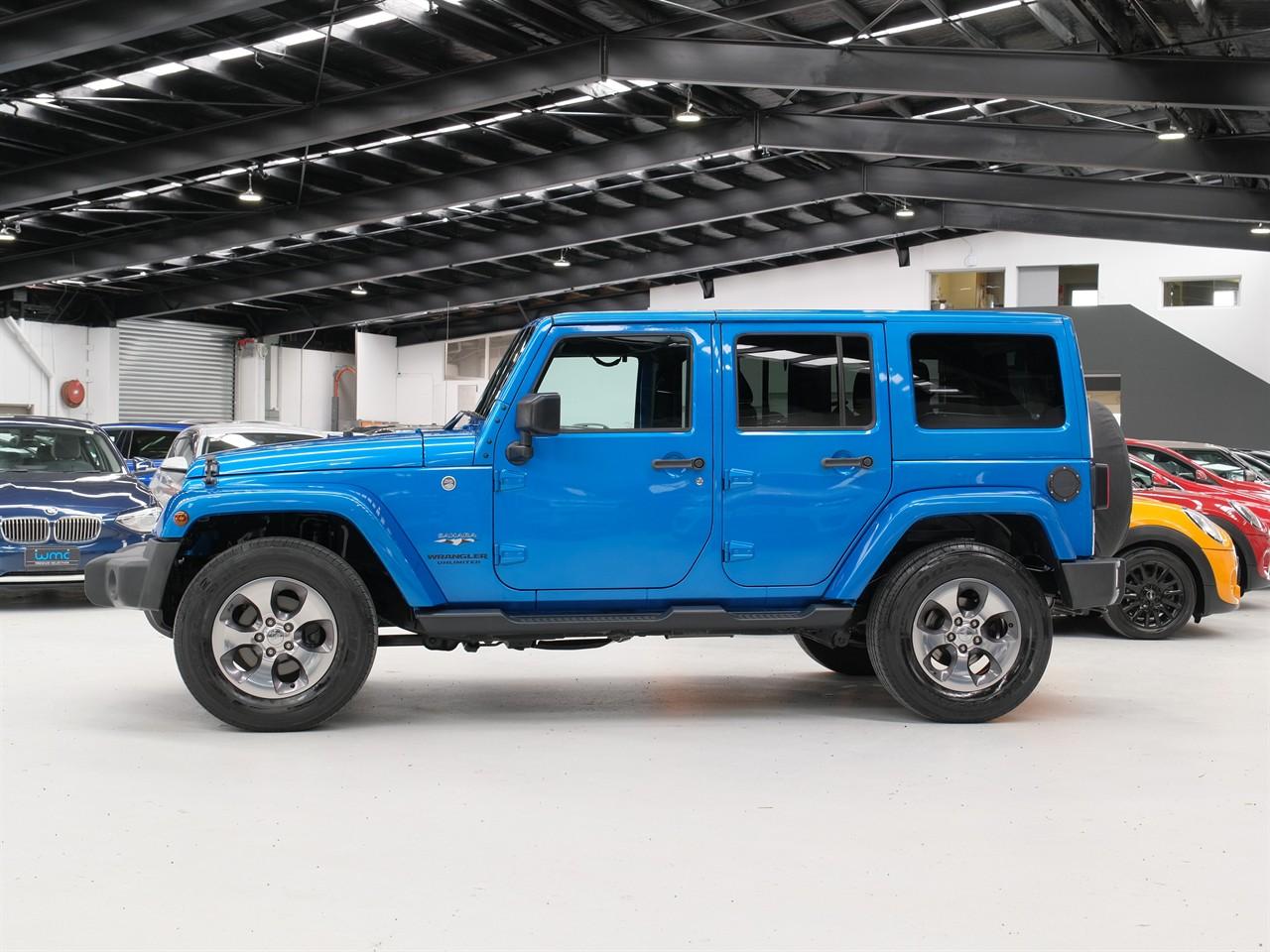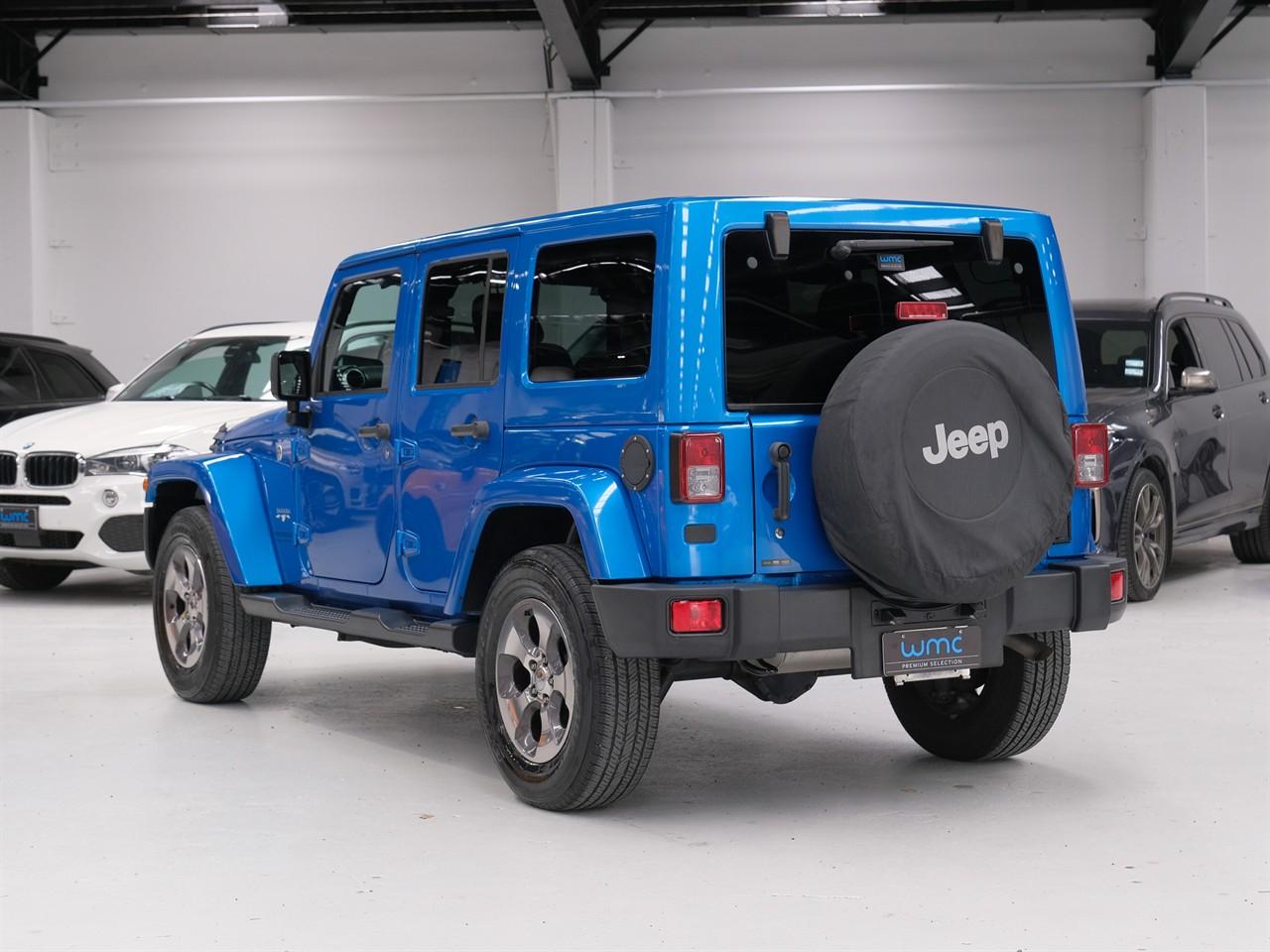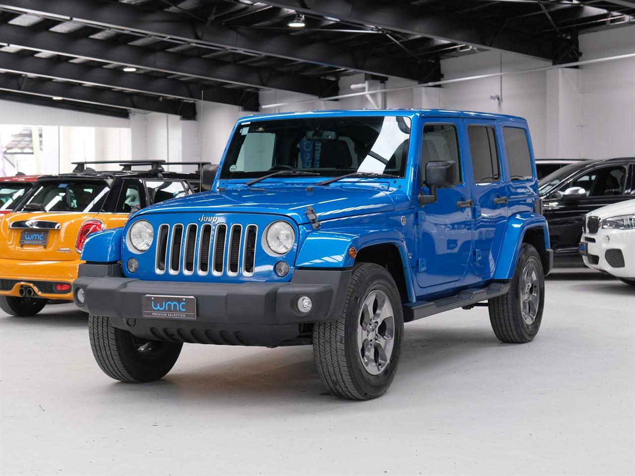 Welcome to Wheeler Motor Company's WMC 'Premium Selection' - Located at 40 Disraeli St, Addington, Christchurch – Wheeler Motor Company is Canterbury's first 'AA' Preferred Dealership so you can be fully assured that your new car is simply the best it can be! 2016 Jeep Wrangler Unlimited 'Sahara' 4WD With its substantial ground clearance, Side Steps and 4WD with Low Range, this Jeep Wrangler is ready to hit the Rough Stuff! This Unlimited 'Sahara' example features a Removable Hard Top Roof, great for enjoying the summer sun when you're out adventuring! If you'd rather stick to the tarmac, you'll no doubt enjoy the convenience of the Wrangler's Cruise Control, Side Parking Camera, and elevated driving position! This example's striking Metallic Blue colour ensures you'll stand out from the rest - it's one not to miss! Enquire 'Today' to secure a Test Drive! Request a personalized video demonstration of this car sent directly to your phone, tablet or computer! We understand everyone's lives are super busy so to save you some time just ask and we will bring the car to your home digitally! Financing your new car? Simply get in contact with one of our on-site Finance Consultants, either by phone or using our Online Finance Application. We will contact you within the hour and tailor the best Finance Package suited to your unique situation. Wheeler Motor Company is one of New Zealand's oldest family dealerships. Please take the time to view the selection of cars on our website for all your vehicle solutions. This vehicle is priced competitively and includes: -'AA' Certified Dealership -'AA' Appraised Available on Request -New WOF -Registration -Extended Warranty Protection Available -Oil and Filter Service -Nationwide Delivery Available - Just Ask Us How! Click on our logo to visit our website for more information, Delivery Available to any City in NZ! This can be your new car today! Enquire on our website Wheeler Motors ‘Today’ and make the decision to buy from one of the best dealerships in the market! -Trade ins/Part Exchange Welcomed -3.6lt Petrol Engine -Tiptronic Gearbox -4WD with Low Range -'Sahara' -18" Factory Alloys -Removable Hardtop Roof -Side Steps -Spot Lights -Factory Tinted Privacy Glass -Cruise Control -Cloth Interior -Airbags -FM/AM Stereo -Side View (Left) Parking Camera -5 Full Diagonal Seatbelts -Air-Conditioning -Easy Pay Finance Available Have a trade? Our dedicated buying team will be able to offer you our best price possible! Ring us ‘Today’ to discuss your Trade-in and arrange a demonstration! Wheeler Motor Company Now Accepts Crypto Payment. Dealer Stock No : a8c1aa35-e7d8-478e-a569-dbc86
