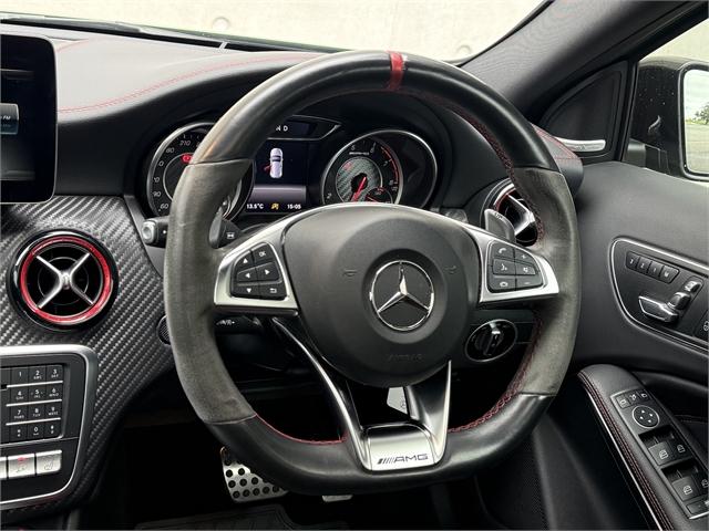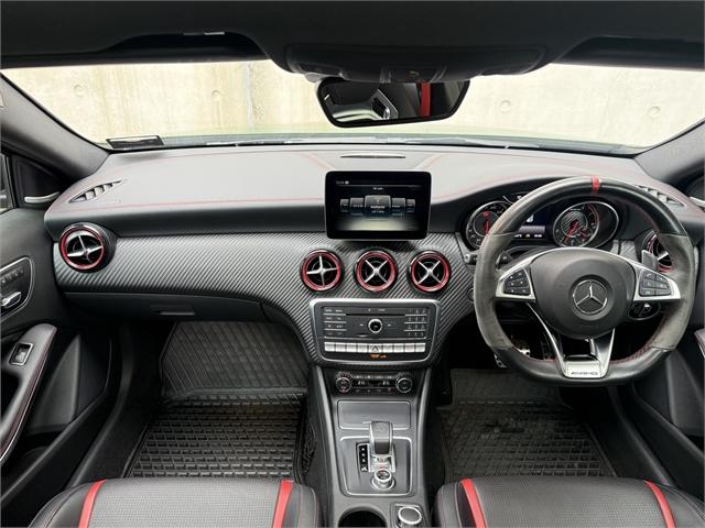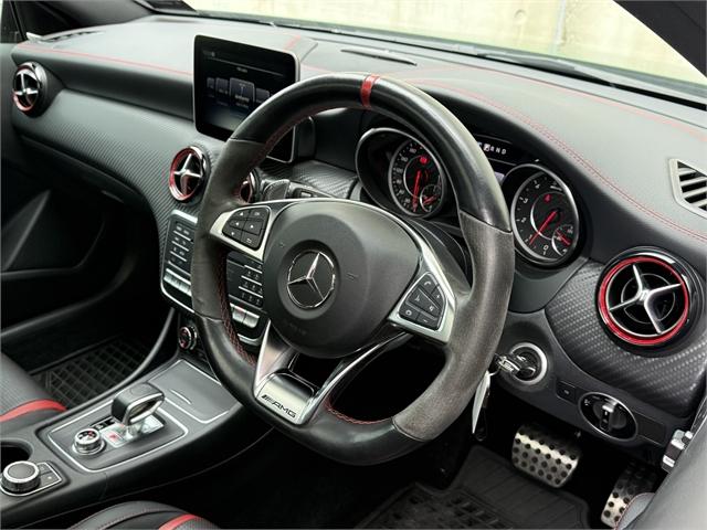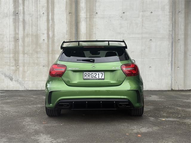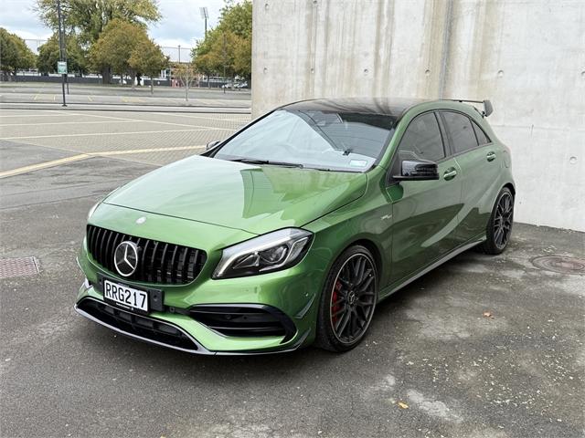 2016 Mercedes-AMG A45 Unleash power, precision, and prestige with this stunning 2016 Mercedes-Benz A45 AMG - the ultimate hot hatch engineered for those who demand more from every drive. TECHNICAL SPECIFICATIONS Engine: 2.0-litre Inline-4 Turbocharged Power Output: 280 kW Torque: 475 Nm Induction: Twin-scroll turbocharger Drivetrain: 4MATIC (All-Wheel Drive) Transmission: 7-speed AMG SPEEDSHIFT DCT dual-clutch automatic INTERIOR HIGHLIGHTS AMG-Performance Seat Memory Package (driver's seat, steering column and mirrors) Seat heaters for driver and front passenger Automatic Panoramic Sliding Sunroof with Viser AMG Performance steering wheel Premium sound system Automatic high beam control (IHC) Drive program selection switch (Agility Select) Ambient lighting Direct starting / ECO start/stop function Floor mats - AMG EXTERIOR HIGHLIGHTS Elbaite Green Metallic Paint finish AMG Exterior Night package AMG styling - Front spoiler, side skirts Wider wheel arch for AMG wheels 4MATIC All Wheel Drive AMG Aerodynamics Package Red-painted brake callipers Static LED headlamps Blind Spot Monitoring Rear view camera Lane Package Discover the Armstrong’s difference. Offering over 1,000 quality new and used vehicles, Armstrong’s makes it easy to find the right car to suit your lifestyle and price range. With an extensive network of dealerships across NZ—in Auckland, Wellington, Christchurch, and Dunedin. Proudly representing over 20 of the world’s most trusted automotive brands, Armstrong’s is committed to delivering exceptional customer service, expert advice, and vehicles you can rely on. Armstrong’s - Passionate about cars, driven by people. A-45, a45, Dealer Stock No : RRG217