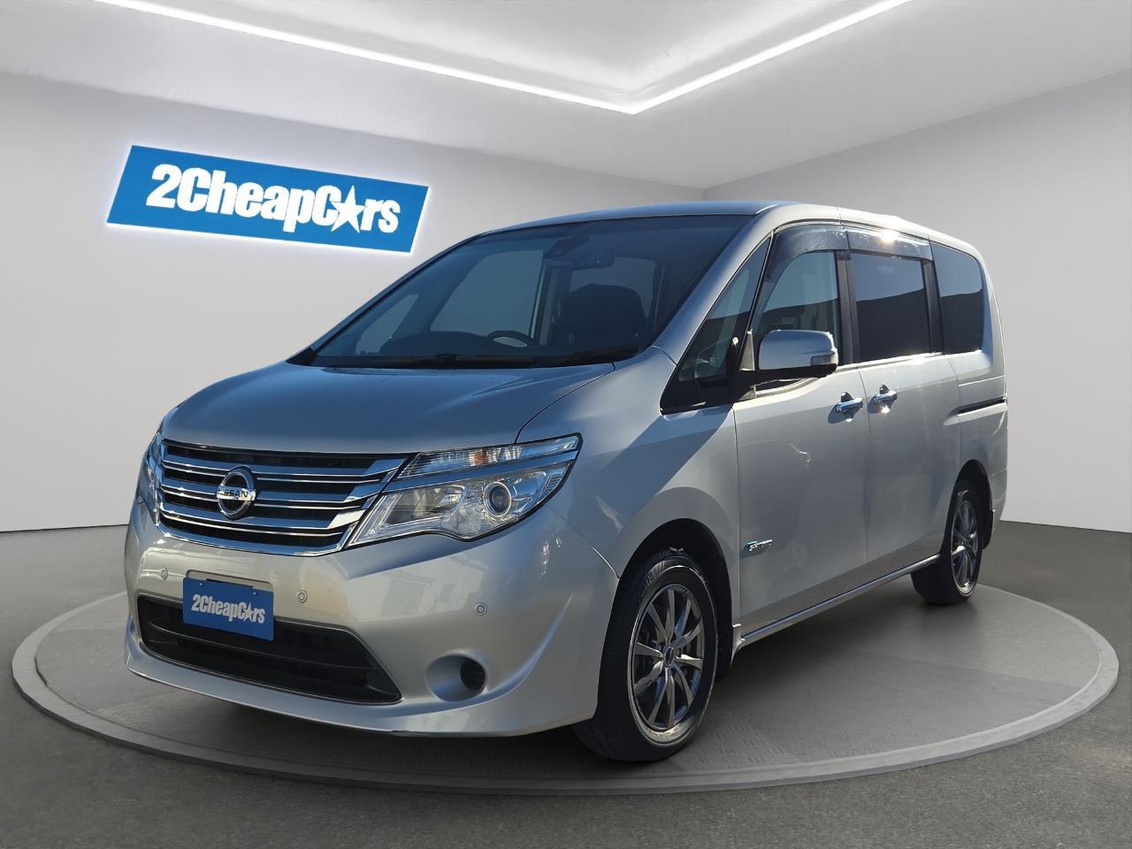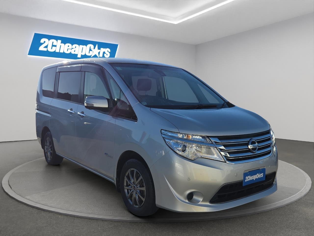 2016 Nissan Serena Hybrid 20X V spacious 7 seater with advanced safety features A practical and family-friendly people mover with hybrid efficiency and loads of space, this Serena is perfect for busy households. Smooth to drive with excellent visibility and comfort, it’s ideal for both daily use and long trips. ? 360° Camera – full surround view for easy parking and tight spaces ? Anti Collision Sensor – added safety with forward collision warning ? Lane Departure Warning – helps keep you safely in your lane Come to test drive in our Christchurch branch today. Why choose 2 Cheap Cars to find your next car?? We are 100% Kiwi owned and operated. We've helped OVER 100,000 Kiwis find their dream cars . Each car is carefully hand selected and inspected by our highly experienced buyers based in Japan!! 13 locations nationwide from north to south. All our vehicles are fully inspected and serviced all for your peace of mind and so we can ensure the quality of the cars we sell are 100%! FINANCE: We have finance options available to suit your needs. Apply on our website or in one of our branches and we will take it from there. We have competitive rates on offer even if you already have your finance sorted! Come have a chat with one of our team today! INSURANCE: Our products have been developed with everyday Kiwis in mind including all the necessary cover while still being easy to understand and most importantly protecting your customers and their families lifestyle and vehicles in times of loss. OPENING HOURS: We are open 7 days a week, 10am - 6pm. Select stores may differ, please check our website for more information. We can quote to ship nationwide! All our cars are priced to sell, and are sold on a FIRST COME, FIRST SERVED basis. Prices exclude on road costs. * Details of finance (including weekly repayments, the total amount repayable over the term of the loan, interest rate, and any applicable fees) can be confirmed with a detailed quote with the dealership. Full disclosure of all the terms of your finance will also be provided to you in the disclosure statement for your consideration prior to confirmation of your purchase. All finance is subject to Finance Now's terms and conditions and approval criteria. 2CheapCars Dealer Stock No : 6e2aed57-8f96-418a-8db6-ec20e All features:Electric Mirrors, Electric Sliding Door (s), Electric Windows, Keyless Entry, Mag Wheels, Push Start, Rear Wiper 360 Degree Camera, ABS Braking, Alloys, ANTI COLLISION SENSOR, Chain Driven, Cruise Control, ESC, Lane Departure Detection, Power Steering, Push Start, Remote locking Air Bag(s), Air Con, Air Conditioning, Central Lock, Radio, Smart key