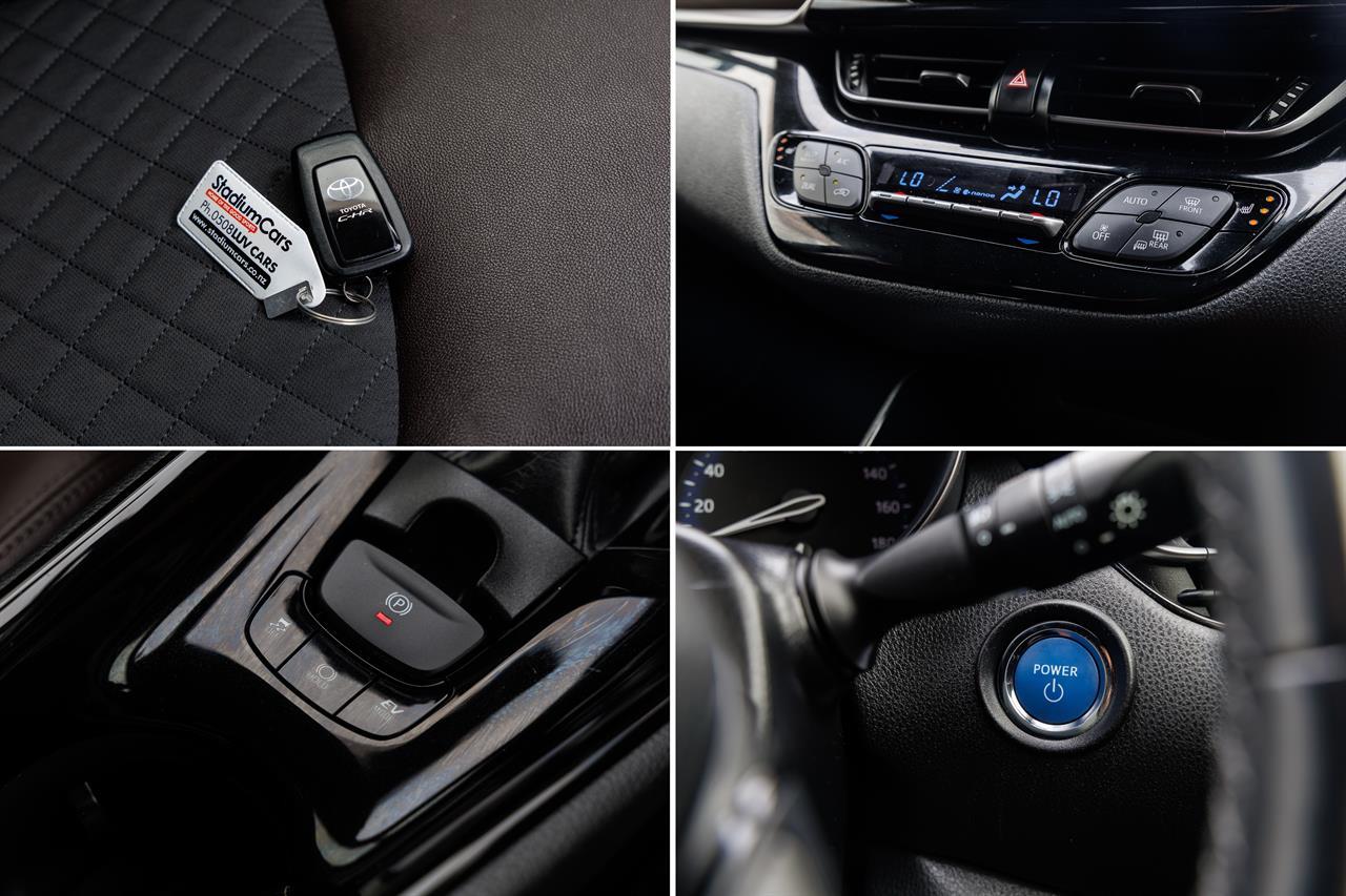 This high spec 2017 Toyota C-HR Hybrid G is a great way to get into a late model Hybrid Crossover; showcasing funky style, great interior comforts, and frugal fuel consumption this C-HR is an excellent choice. Powered by a 1.8 litre engine with Toyota’s Synergy Hybrid Powertrain, making it perfect for around town use and excellent on the highway with Cruise Control. This C-HR is superb, it offers Toyota Safety Sense, 8 Airbags, a Smart Key with Push Button Start, Half Leather Trim, Heated Seats, Lane Departure Warning, Radar Cruise Control, Privacy Glass, Alloy Wheels and more! Stock # 37045 Keyword: CHR Everyone in NZ can buy a car from The Good sports at Stadium Cars in Christchurch and Rangiora. Ask about our ‘mates rates’ on freight rates across NZ. One of New Zealand’s Leading car companies - don’t take our word for it, visit our Facebook page for testimonials, see what our customers are saying about us! All of our Vehicles are: * Personally selected, professionally inspected and checked for smoke and other off-putting smells. * Fully Serviced * Come with a FREE mechanical breakdown warranty with ZERO excess for 6 Months. Trade ins welcome. FINANCE FROM NO DEPOSIT All Stadium Cars are available on NO deposit and easy finance with low repayments tailored to suit almost any budget. *Subject to approval. Phone for preapproval on your finance now! For more information on this vehicle, phone our friendly team. Stadium Cars is one of New Zealand's leading car companies with thousands of happy customers nationwide . Our 'Good sports' mentality is built from the motivation to create lifelong advocates. We won't ask you to tell your friends and family about the great experience you had with Stadium Cars, but we're confident you'll want to . Visit our website to see our BuyerScore reviews and see what our customers are saying about us. • TRADE INS WELCOME • NATIONWIDE DELIVERY AVAILABLE • FINANCE FROM NO DEPOSIT All Stadium Cars are available on NO deposit and easy finance with low repayments tailored to suit almost any budget. *Subject to approval. Dealer Stock No : 23c54ca5-827c-4cac-9797-ef567 All features:Factory Alloys, Factory Privacy Glass, Fog Lights, Mirror Indicators, Monsoon Shields, Parking Sensors, Rear Spoiler, Retractable Power Wing Mirror 5 Star UCSR Safety Rating, ABS Brakes, Chain driven (no cambelt), ECO Mode, Electronic Stability Control, EV Mode, Free 6 Month Warranty, Free FM Band Expander, Hybrid, Immobiliser, Traction Control 8 Airbags, Air Conditioning, Auto Aircon, Auto Lights, Blind Spot Monitoring, Centre Shoulder Belt in Rear, Child seat anchor points, Climate Air Conditioning, Dual Zone Climate Control, Electric Mirrors, Electric Windows, Heated Seats, High Grade 4.5, High Seating Position, ISOFIX , LDW - Lane Departure Warning, Multi Functional Steering Wheel, Non Smokers Car, Power Steering, Pre-Crash Safety System, Radar Cruise Control, Radio, Remote Central Locking, Smart Key with Push Button Start, Smart Key with Smart Door Lock System, Toyota Safety Sense , Trip Computer