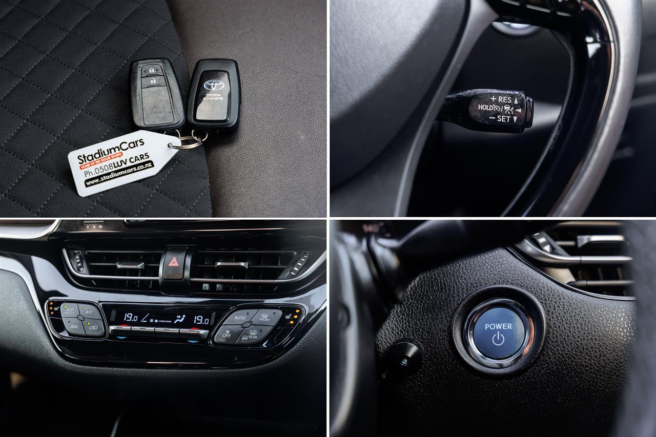 This high spec 2017 Toyota C-HR Hybrid G is a great way to get into a late model Hybrid Crossover; showcasing funky style, great interior comforts, and frugal fuel consumption this C-HR is an excellent choice. Powered by a 1.8 litre engine with Toyota’s Synergy Hybrid Powertrain, making it perfect for around town use and excellent on the highway with Cruise Control. This C-HR is superb, it offers Toyota Safety Sense, 8 Airbags, Body Kit, a Smart Key with Push Button Start, Half Leather Trim, Heated Seats, Lane Departure Warning, Radar Cruise Control, Privacy Glass, Alloy Wheels and more! Stock # 37161 Keyword: CHR Everyone in NZ can buy a car from The Good sports at Stadium Cars in Christchurch and Rangiora. Ask about our ‘mates rates’ on freight rates across NZ. One of New Zealand’s Leading car companies - don’t take our word for it, visit our Facebook page for testimonials, see what our customers are saying about us! All of our Vehicles are: * Personally selected, professionally inspected and checked for smoke and other off-putting smells. * Fully Serviced * Come with a FREE mechanical breakdown warranty with ZERO excess for 6 Months. Trade ins welcome. FINANCE FROM NO DEPOSIT All Stadium Cars are available on NO deposit and easy finance with low repayments tailored to suit almost any budget. *Subject to approval. Phone for preapproval on your finance now! For more information on this vehicle, phone our friendly team. Stadium Cars is one of New Zealand's leading car companies with thousands of happy customers nationwide . Our 'Good sports' mentality is built from the motivation to create lifelong advocates. We won't ask you to tell your friends and family about the great experience you had with Stadium Cars, but we're confident you'll want to . Visit our website to see our BuyerScore reviews and see what our customers are saying about us. • TRADE INS WELCOME • NATIONWIDE DELIVERY AVAILABLE • FINANCE FROM NO DEPOSIT All Stadium Cars are available on NO deposit and easy finance with low repayments tailored to suit almost any budget. *Subject to approval. Dealer Stock No : 816dd6fd-1ac3-4523-b657-94195 All features:Body Kit, Factory Alloys, Factory Privacy Glass, Fog Lights, LED Headlights, Mirror Indicators, Parking Sensors, Rear Spoiler, Retractable Power Wing Mirror ABS Brakes, Chain driven (no cambelt), ECO Mode, Electronic Stability Control, EV Mode, Free 6 Month Warranty, Free FM Band Expander, Hybrid, Immobiliser, Traction Control 8 Airbags, Air Conditioning, Auto Lights, Auto Wipers, Centre Shoulder Belt in Rear, Child seat anchor points, Climate Air Conditioning, Dual Zone Climate Control, Electric Mirrors, Electric Windows, Heated Seats, High Grade 4.5, High Seating Position, ISOFIX , LDW - Lane Departure Warning, Low Km's, Multi Functional Steering Wheel, Non Smokers Car, Power Steering, Pre-Crash Safety System, Radar Cruise Control, Radio, Remote Central Locking, Smart Key with Push Button Start, Smart Key with Smart Door Lock System, Toyota Safety Sense , Trip Computer