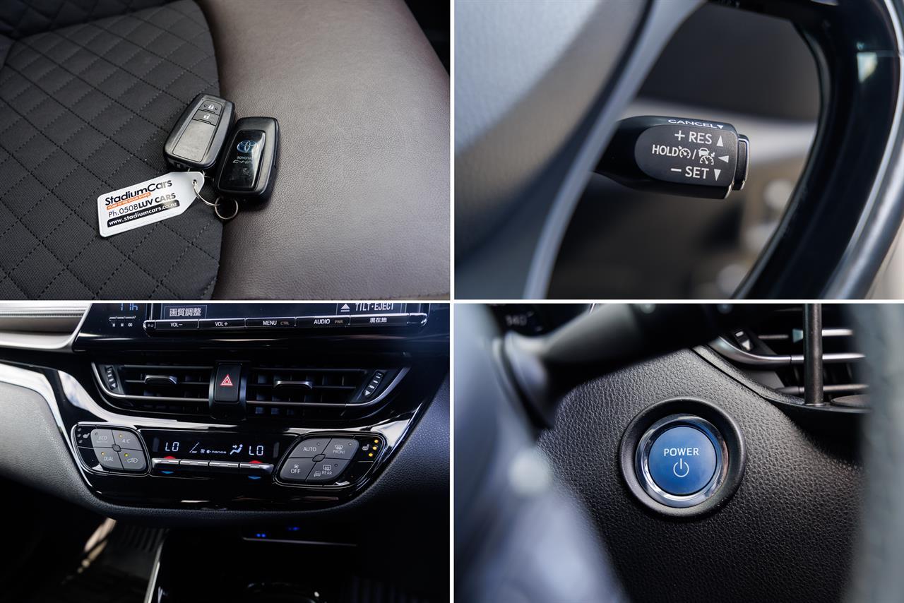 This high spec 2017 Toyota C-HR Hybrid G is a great way to get into a late model Hybrid Crossover; showcasing funky style, great interior comforts, and frugal fuel consumption this C-HR is an excellent choice. Powered by a 1.8 litre engine with Toyota’s Synergy Hybrid Powertrain, making it perfect for around town use and excellent on the highway with Cruise Control. This C-HR is superb, it offers Toyota Safety Sense, 8 Airbags, a Smart Key with Push Button Start, Half Leather Trim, Heated Seats, Lane Departure Warning, Radar Cruise Control, Privacy Glass, Alloy Wheels and more! Stock # 37239 Keyword: CHR Everyone in NZ can buy a car from The Good sports at Stadium Cars in Christchurch and Rangiora. Ask about our ‘mates rates’ on freight rates across NZ. One of New Zealand’s Leading car companies - don’t take our word for it, visit our Facebook page for testimonials, see what our customers are saying about us! All of our Vehicles are: * Personally selected, professionally inspected and checked for smoke and other off-putting smells. * Fully Serviced * Come with a FREE mechanical breakdown warranty with ZERO excess for 6 Months. Trade ins welcome. FINANCE FROM NO DEPOSIT All Stadium Cars are available on NO deposit and easy finance with low repayments tailored to suit almost any budget. *Subject to approval. Phone for preapproval on your finance now! For more information on this vehicle, phone our friendly team. Stadium Cars is one of New Zealand's leading car companies with thousands of happy customers nationwide . Our 'Good sports' mentality is built from the motivation to create lifelong advocates. We won't ask you to tell your friends and family about the great experience you had with Stadium Cars, but we're confident you'll want to . Visit our website to see our BuyerScore reviews and see what our customers are saying about us. • TRADE INS WELCOME • NATIONWIDE DELIVERY AVAILABLE • FINANCE FROM NO DEPOSIT All Stadium Cars are available on NO deposit and easy finance with low repayments tailored to suit almost any budget. *Subject to approval. Dealer Stock No : 3050b865-6ec2-46c9-b567-5feec All features:Factory Alloys, Factory Privacy Glass, Fog Lights, Mirror Indicators, Rear Spoiler, Retractable Power Wing Mirror 5 Star UCSR Safety Rating, ABS Brakes, Chain driven (no cambelt), ECO Mode, Electronic Stability Control, EV Mode, Free 6 Month Warranty, Free FM Band Expander, Hybrid, Immobiliser, Traction Control 8 Airbags, Air Conditioning, Auto Aircon, Auto Lights, Blind Spot Monitoring, Centre Shoulder Belt in Rear, Child seat anchor points, Climate Air Conditioning, Dual Zone Climate Control, Electric Mirrors, Electric Windows, Heated Seats, High Grade 4.5, High Seating Position, ISOFIX , LDW - Lane Departure Warning, Multi Functional Steering Wheel, Non Smokers Car, Power Steering, Pre-Crash Safety System, Radar Cruise Control, Radio, Remote Central Locking, Smart Key with Push Button Start, Smart Key with Smart Door Lock System, Toyota Safety Sense , Trip Computer