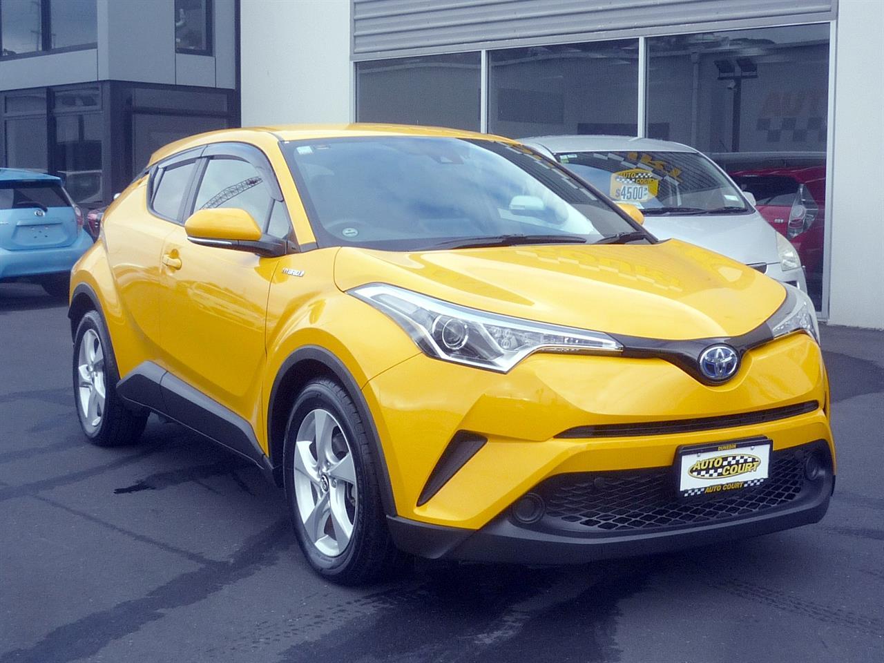 This is a superb 2016 Toyota C-HR S Hybrid, in yellow, with 17 inch alloy wheels, that has travelled 50,400 kilometres It is powered by a 1.8-litre 73kW petrol engine coupled to 60kW electric motor, the same combination as the hybrid Corolla and Toyota Prius. This hybrid combination results in a 4-star, 4.2L/100 economy rating along with a 5-star VSRR safety rating. A very smart looking car, it comes with many features including six airbags, stability/traction control, cruise control, frontal collision mitigation, lane departure warning, smart key, and reversing camera. NB; THIS CAR IS ELIGIBLE FOR A CLEAN CAR REBATE OF $891.25 ############################## All enquiries are welcome and we endeavour to answer promptly. You are invited to call in to our Dunedin premises to inspect our range of imported and NZ new vehicles including EV's. -------------------------------------------------- Opening Hours: Monday to Friday: 8:30am - 5:30pm Saturday: 10am - 4pm Sunday: 1pm - 5pm --------------------------------------------------- Enquiries from around New Zealand are very welcome and we can arrange transportation to most parts of New Zealand. -------------------------------------------------- We offer: On-road costs and GST are included in price Certified odometers on all fresh imports Two keys provided Trade-ins considered Flexible Finance Packages Protecta Mechanical Breakdown Insurance ############################### Dealer Stock No : 14306587-11d2-4d69-8ae3-a5921 All features:Alloy wheels, Electric Mirrors, Spoiler 1.8 Litre Petrol/Hybrid, ABS Braking, Power Steering, Stability Control, Traction Control "Smart Key" Operation, 6 Airbags, CD Player, Central Locking, Climate Control, Electric Windows, Immobiliser, Keyless Entry, Rear-view Camera