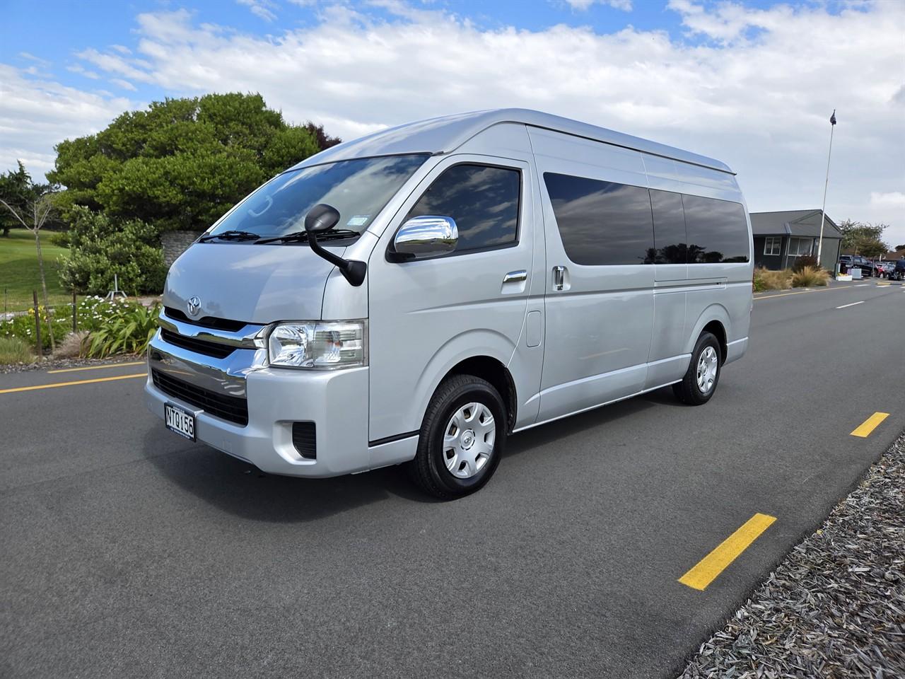 2017 Toyota Hiace Grand Cabin - 2700cc VVT-i chain driven petrol engine, automatic, full time 4WD. 10 Seater model. Very sought after and fully optioned model with full independent climate control front and rear, tinted glass, reversing camera, Bluetooth Handsfree + media streaming. Overall in very tidy condition inside and out. Includes fresh WOF, service, all on road costs (6 months registration) and 6 month MTA warranty. Best price, quality and service guaranteed. Why you should consider Hopmans for your new Toyota Hiace - On road costs are included in price (6 months registration, 2000km RUC) - High quality product at competitive pricing - 6 month no excess MTA warranty - We are an MTA & AA Assured car dealer - Family owned and operated business - 32 years and counting - Knowledgeable and friendly staff with a no pressure sale environment - Full after sales service at our workshop Hopman Motors - AA/Jevic Odometer Certified - All vans are serviced, oil and filter replaced - Includes band expander for NZ FM/AM frequencies - AA Appraisals are available at your request - We can trade your vehicle regardless of age or condition - Subsidised vehicle delivery to anywhere in the country - Onsite finance available at competitive rates - We also offer the following add-ons for your new Hiace at competitive pricing: - Bluetooth Hands Free - Multifunction Navigation Unit - CD Player with AUX/USB - 5 Star Alarm System - Parking Sensors - Reversing Camera - Tow bar - Nudge bar - Cargo barrier - Heavy duty roof racks - Window tinting - Vehicle sign writing - Extended Mechanical Breakdown warranties with NZ’s leading warranty provider Autosure. Keywords: Regius ace minibus jumbo zx mini bus commuter coach 10 seat campervan camper conversion disability mobility jumbo minivan Dealer Stock No : 5fbb67ca-76db-4672-bdef-aede8 All features:ABS, Air Bags, Air Conditioning, Bluetooth, CD Player, Central Locking, Electric Mirrors, Electric Windows, Power Steering, Rear Wiper, Remote Locking, Reversing Camera 4WD/4x4