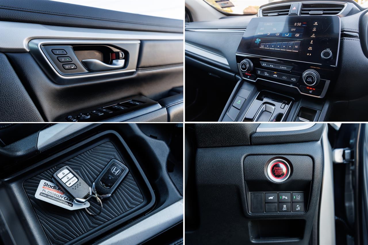 This NZ New Top Spec 2018 Honda CR-V Sport Sensing AWD is a great example of these popular SUV's, smooth and compliant to drive with great interior flexibility, this CR-V makes for great buying! Powered by Honda's Chain Driven 1.5 Turbo Vtec engine with All Wheel Drive, this CR-V drives extremely well and has that extra added grip available on demand in all situations. This All Wheel Drive CR-V also offers 8 Airbags, Apple CarPlay, NZ Navigation, 2 Smart Keys with Push Button Start, Cruise Control, Pre Crash Safety, Lane Departure Warning, Heated Seats, Leather Interior, Memory Drivers Seat, Auto Lights, Paddleshift, Sunroof, ISOFIX Child Seat Anchor Points, Fog Lights, and more! Stock # 37260 Everyone in NZ can buy a car from The Good sports at Stadium Cars in Christchurch and Rangiora. Ask about our ‘mates rates’ on freight rates across NZ. One of New Zealand’s Leading car companies - don’t take our word for it, visit our Facebook page for testimonials, see what our customers are saying about us! All of our Vehicles are: * Personally selected, professionally inspected and checked for smoke and other off-putting smells. * Fully Serviced * Come with a FREE mechanical breakdown warranty with ZERO excess for 6 Months. Trade ins welcome. FINANCE FROM NO DEPOSIT All Stadium Cars are available on NO deposit and easy finance with low repayments tailored to suit almost any budget. *Subject to approval. Phone for preapproval on your finance now! For more information on this vehicle, phone our friendly team. Stadium Cars is one of New Zealand's leading car companies with thousands of happy customers nationwide . Our 'Good sports' mentality is built from the motivation to create lifelong advocates. We won't ask you to tell your friends and family about the great experience you had with Stadium Cars, but we're confident you'll want to . Visit our website to see our BuyerScore reviews and see what our customers are saying about us. • TRADE INS WELCOME • NATIONWIDE DELIVERY AVAILABLE • FINANCE FROM NO DEPOSIT All Stadium Cars are available on NO deposit and easy finance with low repayments tailored to suit almost any budget. *Subject to approval. Dealer Stock No : 9e17ea14-ef6b-4032-8e41-d85e2 All features:Factory Alloys, Factory Privacy Glass, Mirror Indicators, Rear Spoiler, Retractable Power Wing Mirror, Roof Rails, Sun Roof 5 Star UCSR Safety Rating, ABS Brakes, All Wheel Drive, Chain driven (no cambelt), ECO Mode, Electronic Stability Control, Free 6 Month Warranty, Immobiliser, NZ New, Tiptronic, Traction Control Air Conditioning, Android Auto, Apple CarPlay, Auto Aircon, Auto Lights, Bluetooth, Centre Shoulder Belt in Rear, Child seat anchor points, Climate Air Conditioning, Dual Zone Climate Control, Electric Mirrors, Electric Seat (Drivers), Electric Windows, Fully Optioned, Heated Seats, High Seating Position, ISOFIX , LDW - Lane Departure Warning, Media Unit, Memory Seats, Multi Functional Steering Wheel, Non Smokers Car, NZ Sat Nav, Power Operated Tailgate, Power Steering, Radio, Remote Central Locking, Reversing Camera, Smart Key with Push Button Start, Touch Screen Media Interface, Trip Computer, USB input