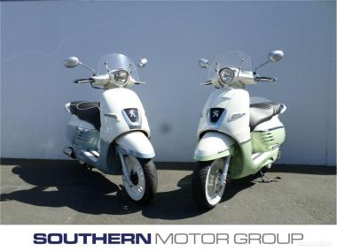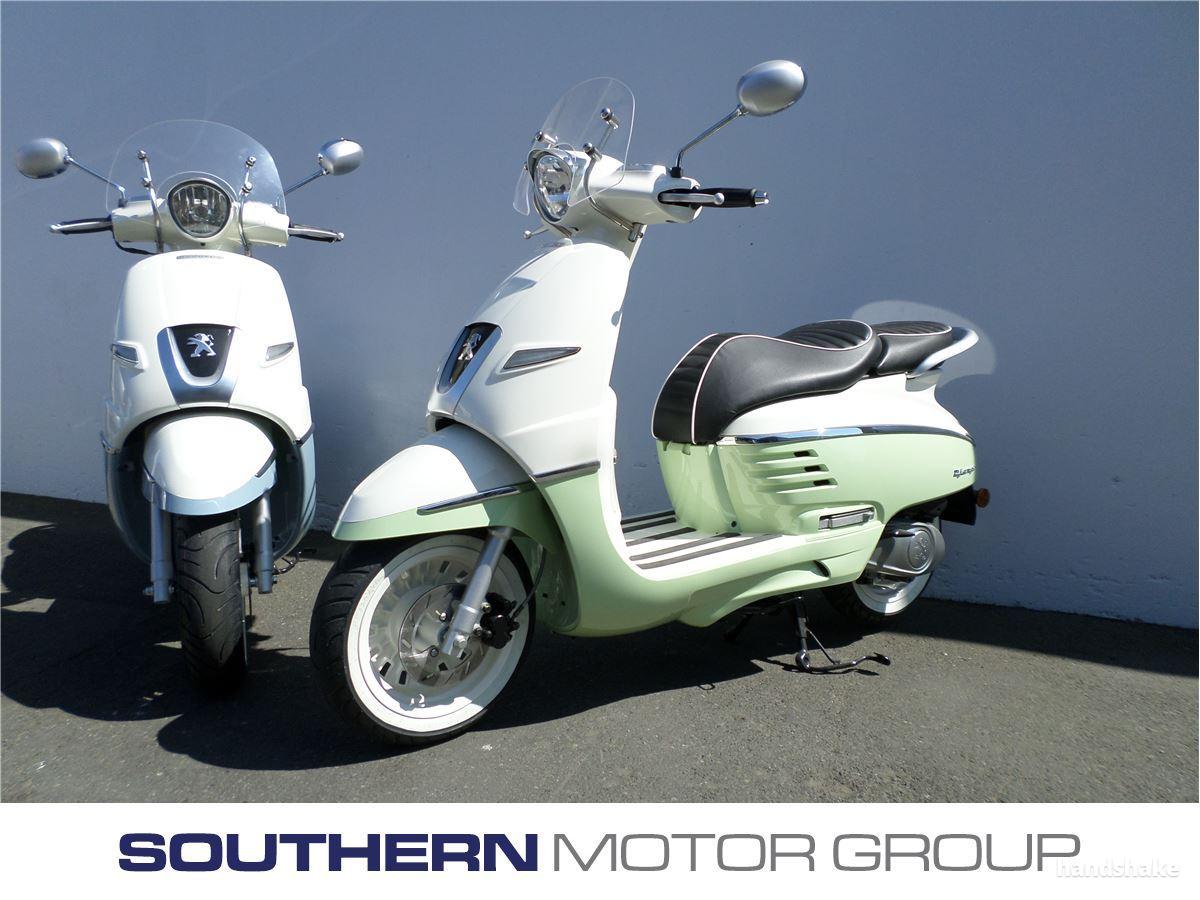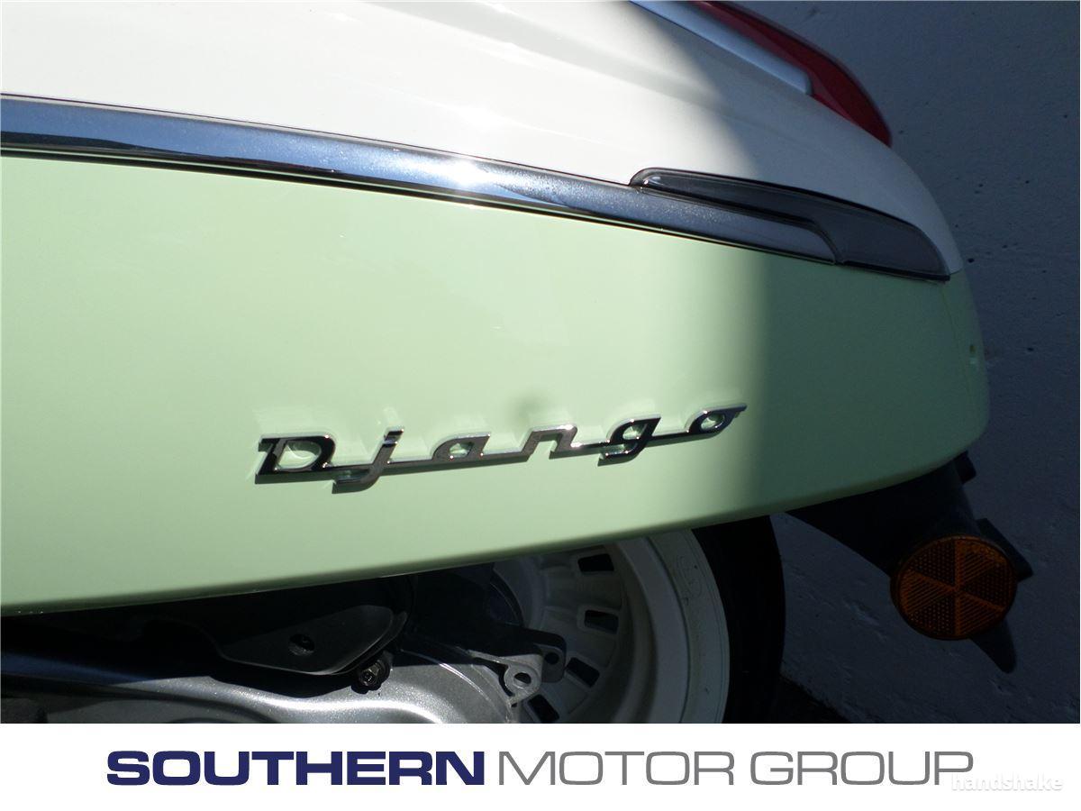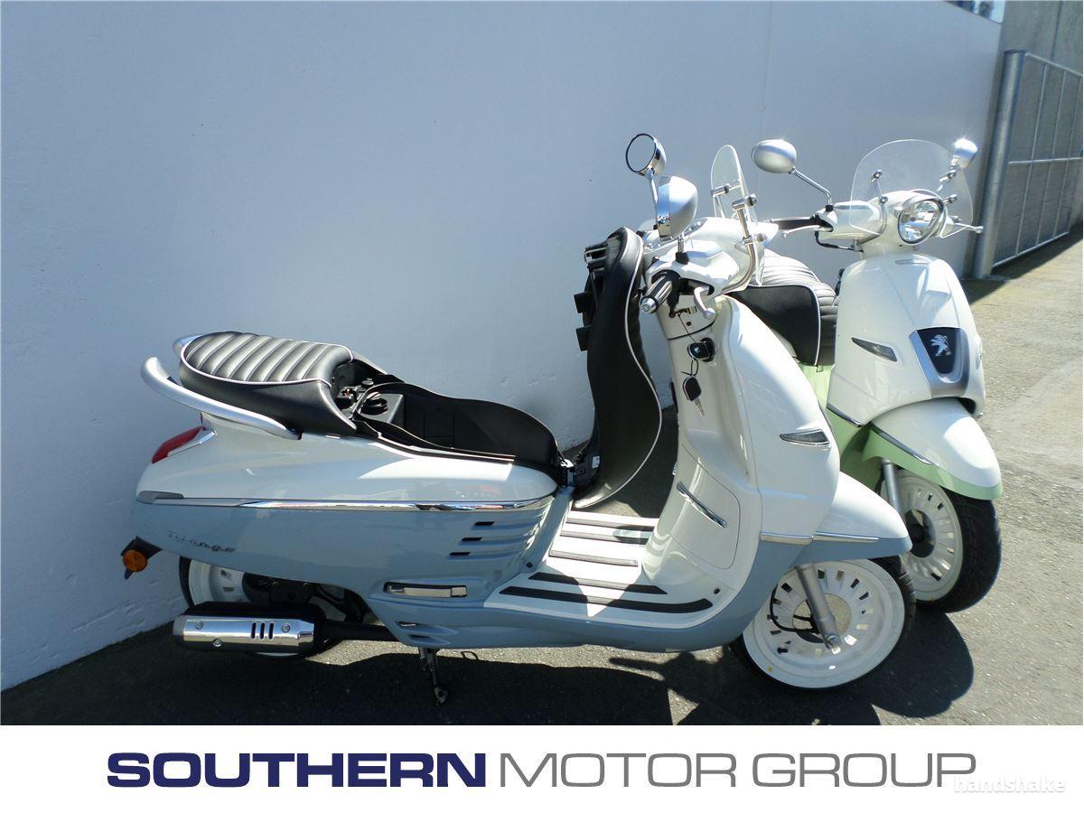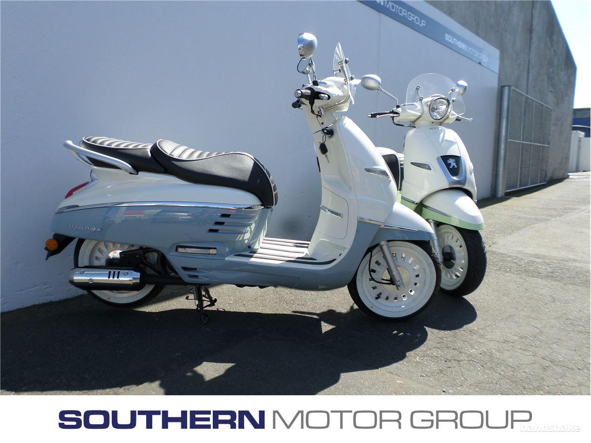 Peugeot Django Scooter 2 Stroke 49cc engine Retractable passenger footrests 2 year unlimited km warranty Bag hook Large under seat storage for helmet No motorcycle licence required, class 1 learners car licence only Both Sport and Evasion models available 12V cigarette lighter Range of colours Dealer Stock No : 101621