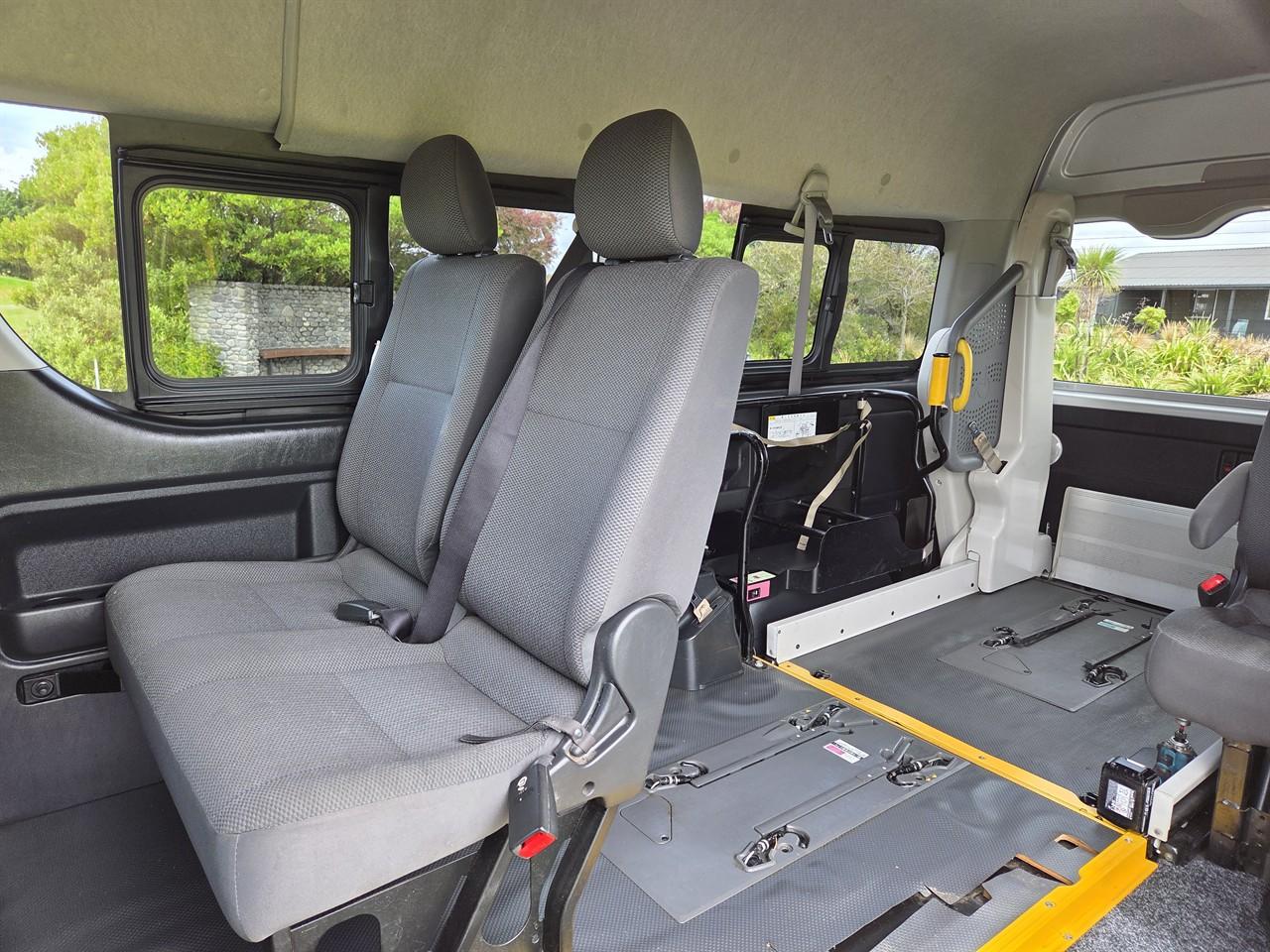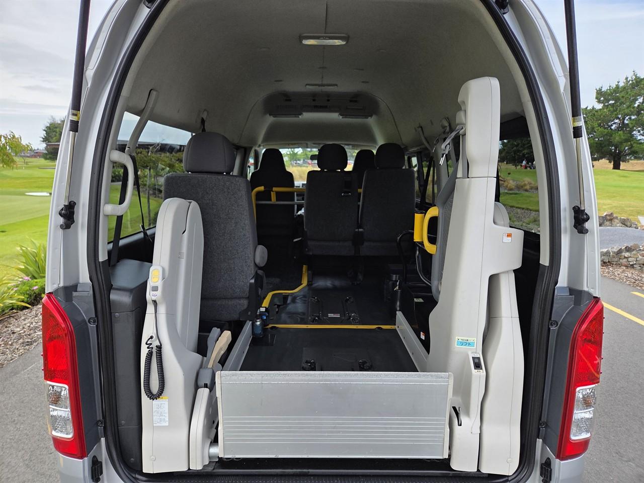 2018 Toyota Hiace Welcab Mobility Van - 2.0 VVT-i chain drive petrol engine, automatic. Features Electronic Stability Control, Toyota Safety Sense anti collision warning, lane departure warning as standard safety equipment. In excellent condition inside and out. Fitted with factory Toyota wheel chair hoist that will be certified for NZ use. (Includes low volume certification and restraints) This hoist is suitable for total weight of 250KG push type wheel chair. Seats up to 7x passengers. 3x across front and 3x in rear of van + wheelchair position. Features opening windows in rear, tinted glass + heating and air conditioning with independent controls. Includes all on road costs (6 months registration) service and 6 month MTA warranty. At **Hopman Motor Group**, our focus is simple: to offer the **best price, quality, and service-guaranteed**. We believe buying a vehicle should be simple, transparent, and stress-free. As a **family-owned and operated business** with over 32 years in the industry, we are proud to offer a personal, no-pressure approach — backed by great service, competitive pricing, and quality vehicles. Here’s why Hopmans could be the right choice for you: - **Family-Owned & Operated:** Over 32 years of trusted service. - **High-Quality Vehicles:** We offer top-quality cars at competitive prices. - **Transparent Pricing:** On-road-costs are included in the price of all vehicles. - **Peace of Mind:** You get a 6-month/10,000km no-excess MTA warranty with each purchase. - **Service:** Vehicles come with a fresh service, oil and filter changed (if applicable) - **No Pressure Sales:** Our friendly and knowledgeable staff are here to help. - **Trade-Ins Made Easy:** We accept trade-ins of all ages and conditions. - **Nationwide Delivery:** Enjoy subsidised delivery to anywhere in New Zealand. - **Vehicle extras available:** Towbars, roof racks, stereos and more, all at discounted pricing **In-house finance** with competitive rates and same-day approvals. Whether you enquire online, over the phone, or in person - we’re happy to help find the best finance option for you. **Extended Mechanical Warranties** are also available at reduced pricing for further peace of mind. Not sure yet? Feel free to reach out to our friendly sales team for more information or check out what previous customers are saying about us online. **Best price, quality, and service guaranteed.** Keywords: Regius ace zx zl nv350 caravan Keywords: Disability van wheelchair hoist lift wellfare wellcab well cab wheel chair welcab rear hoist Dealer Stock No : 0d2d047d-fcf0-42cd-a224-39848 All features:ABS, Air Bags, Air Conditioning, Electric Windows, Power Steering, Rear Wiper, Remote Locking