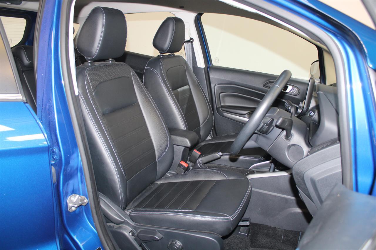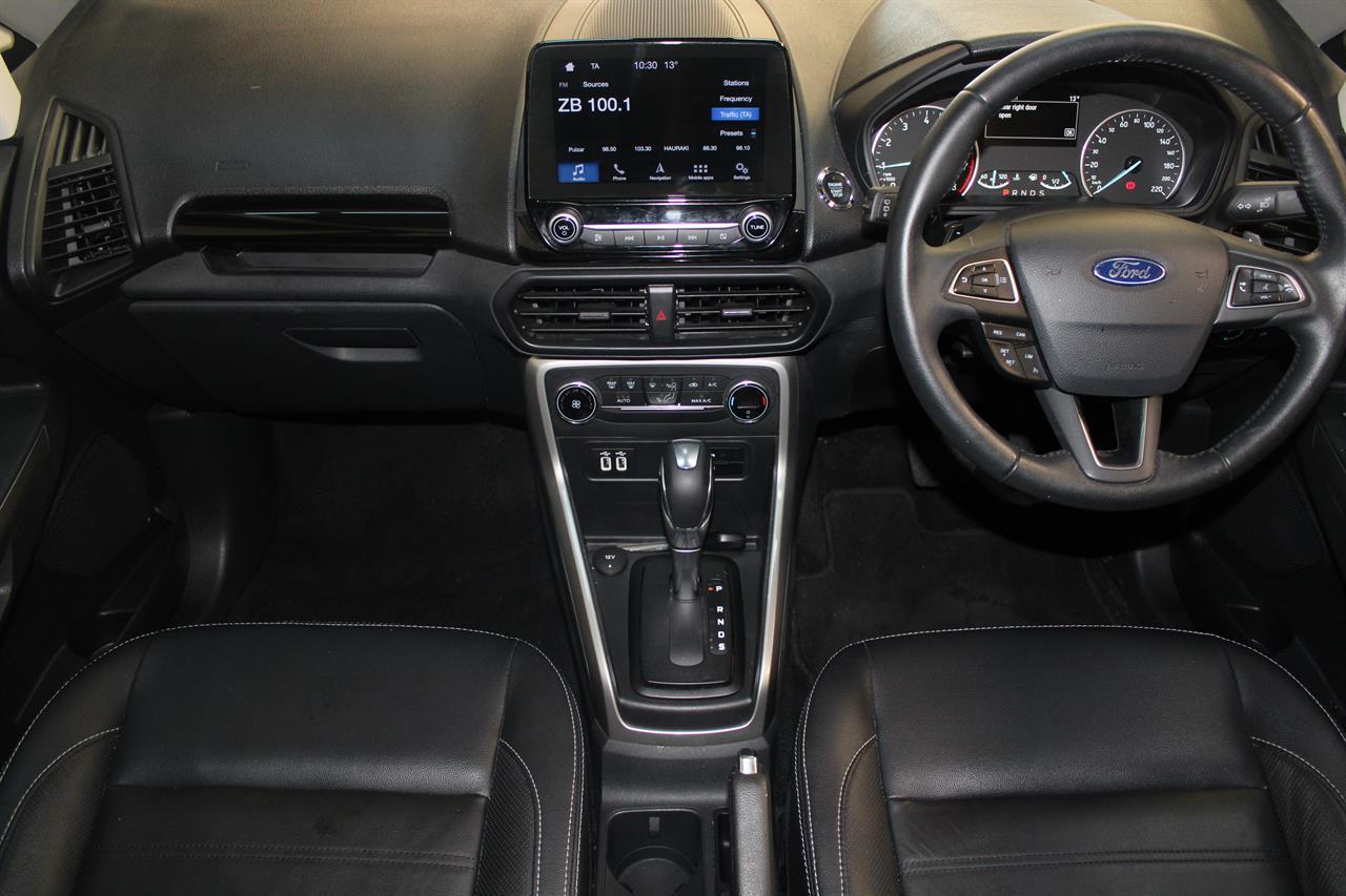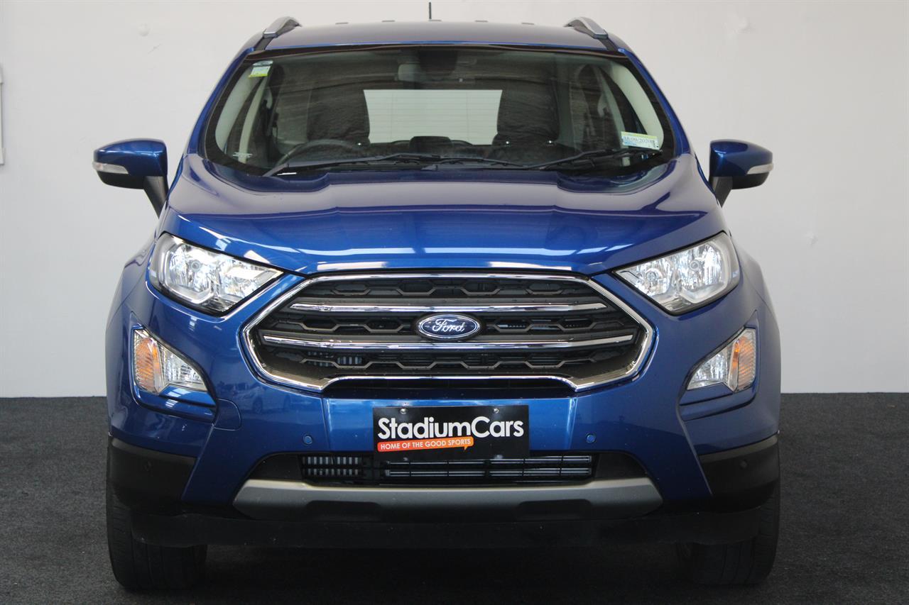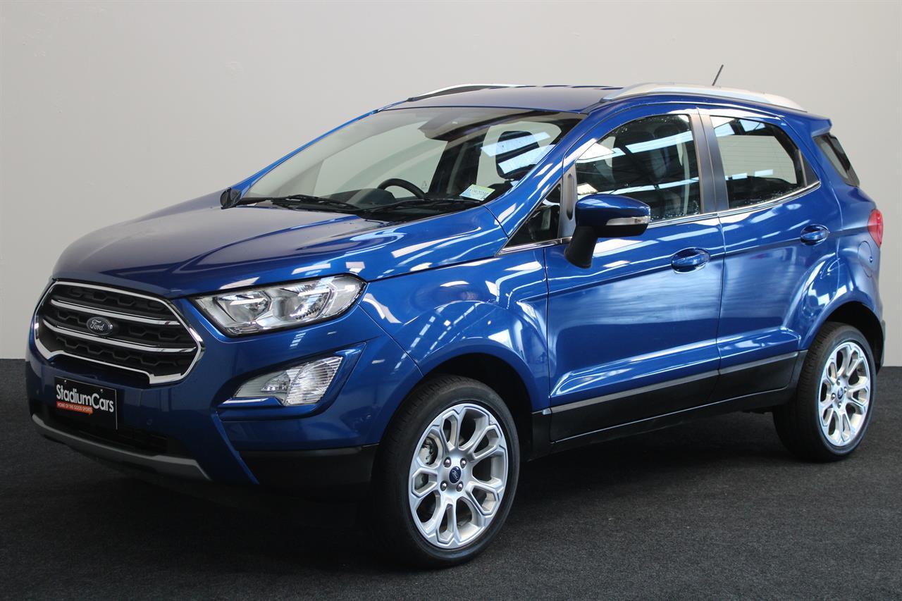 This facelift NZ New 2019 Ford EcoSport Titanium is a Great Fun Sized SUV. A modern & trendy design, it is very stylish as well as being brilliant all-around town. It’s easy to park, economical and along with a higher ride height for safety makes this wee gem a winner. This Ecosport Titanium has a 1.0 litre Turbocharged EcoBoost engine matched to a 6 Speed Auto that is the latest Ford Technology, boasting ample power and frugal fuel consumption to keep running costs low it returns an excellent 6.7L per 100km. It offers a 5 STAR ANCAP Safety Rating with ABS Brakes, ESC, EBD and 7 Airbags including Drivers Knee making this a very safe vehicle. This Titanium model offers a Smart Key with Push Button Start, Auto Climate Air Conditioning, Multi Function Steering Wheel, Cruise Control, Full Leather Trim, Latest Microsoft Sync System with AUX/ USB and Bluetooth, Parking Sensors, Reversing Camera, Paddleshift Sports Mode, Fog Lights, Roof Rails, Rear Spoiler, Alloy Wheels and more Stock # 25386 Everyone in NZ can buy a car from The Good sports at Stadium Cars in Christchurch and Rangiora. Ask about our ‘mates rates’ on freight rates across NZ. One of New Zealand’s Leading car companies - don’t take our word for it, visit our Facebook page for testimonials, see what our customers are saying about us! All of our Vehicles are: * Personally selected, professionally inspected and checked for smoke and other off-putting smells. * Fully Serviced * Come with a FREE mechanical breakdown warranty with ZERO excess for 6 Months. Trade ins welcome. FINANCE FROM NO DEPOSIT All Stadium Cars are available on NO deposit and easy finance with low repayments tailored to suit almost any budget. *Subject to approval. Phone for preapproval on your finance now! For more information on this vehicle, phone our friendly team. Stadium Cars is one of New Zealand's leading car companies with thousands of happy customers nationwide . Our 'Good sports' mentality is built from the motivation to create lifelong advocates. We won't ask you to tell your friends and family about the great experience you had with Stadium Cars, but we're confident you'll want to . Visit our website to see our BuyerScore reviews and see what our customers are saying about us. • TRADE INS WELCOME • FREE DELIVERY SOUTH ISLAND WIDE • FINANCE FROM NO DEPOSIT All Stadium Cars are available on NO deposit and easy finance with low repayments tailored to suit almost any budget. *Subject to approval. Dealer Stock No : 5f2ae4ca-01ed-4b81-bf8c-f03ba All features:Alloy Wheels, Fog Lights, Rear Spoiler 5 Star ANCAP Safety Rating, Balance of New Car Warranty, ESC, NZ New, Paddle Shift, Traction Control, Turbo 7 Airbags, AUX input, Bluetooth, Centre Shoulder Belt in Rear, Child seat anchor points, Climate Air Conditioning, Cruise Control, Electric Mirrors, Electric Windows, High Seating Position, ISOFIX , Leather, Leather Wrapped Steering Wheel, Multi Functional Steering Wheel, Power Steering, Remote Central Locking, Reversing Camera, Smart Key with Push Button Start, Touch Screen Media Interface, Trip Computer, USB input