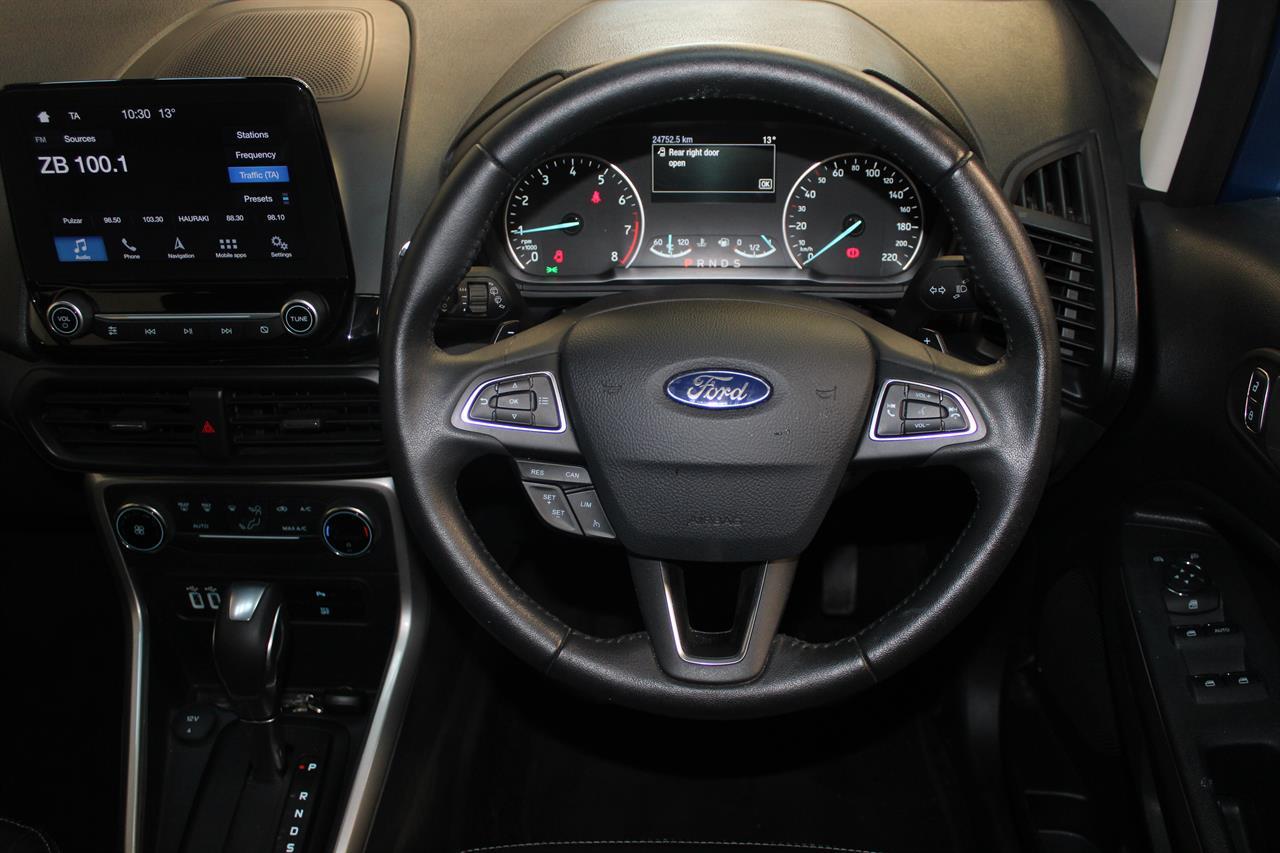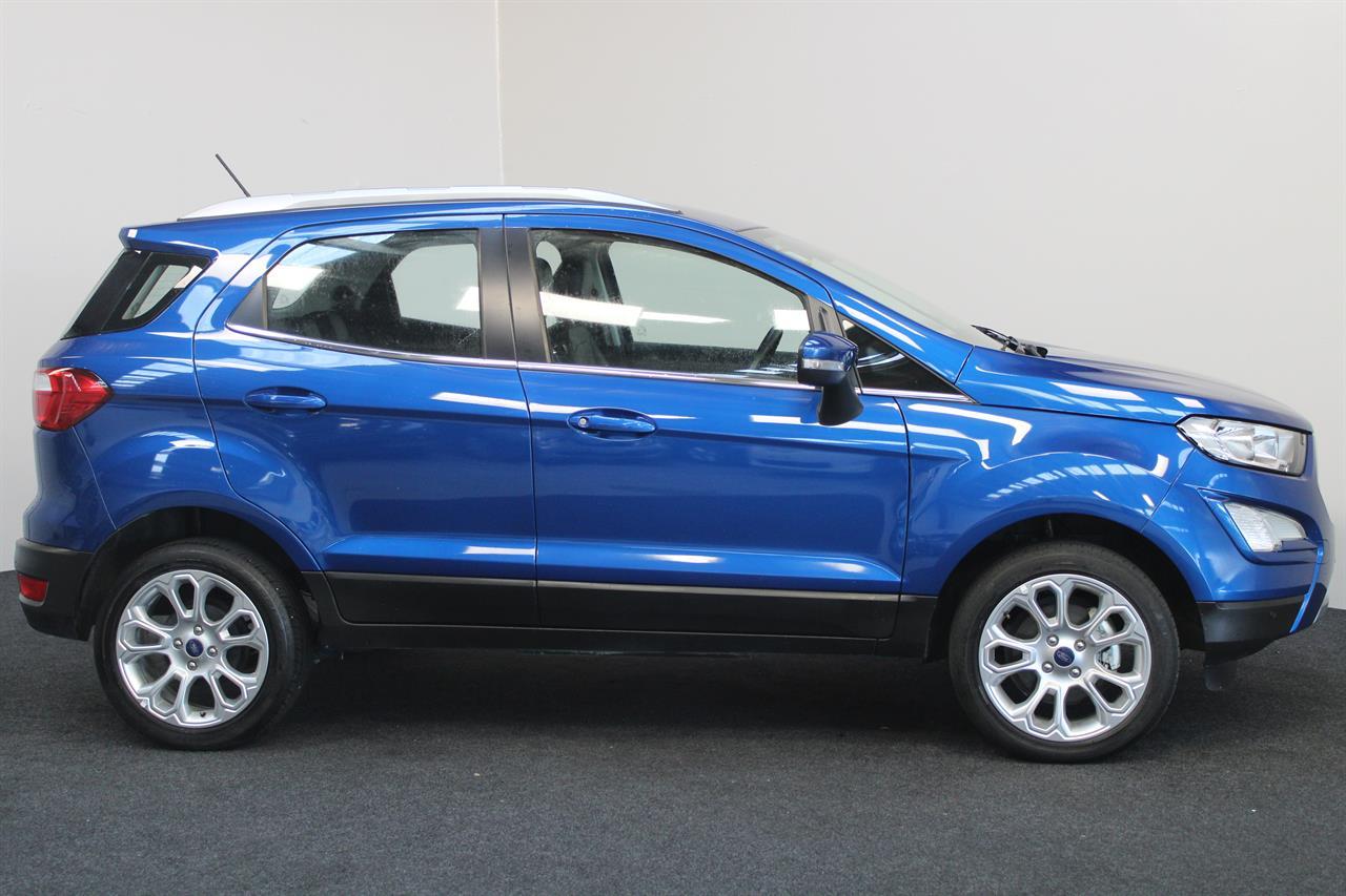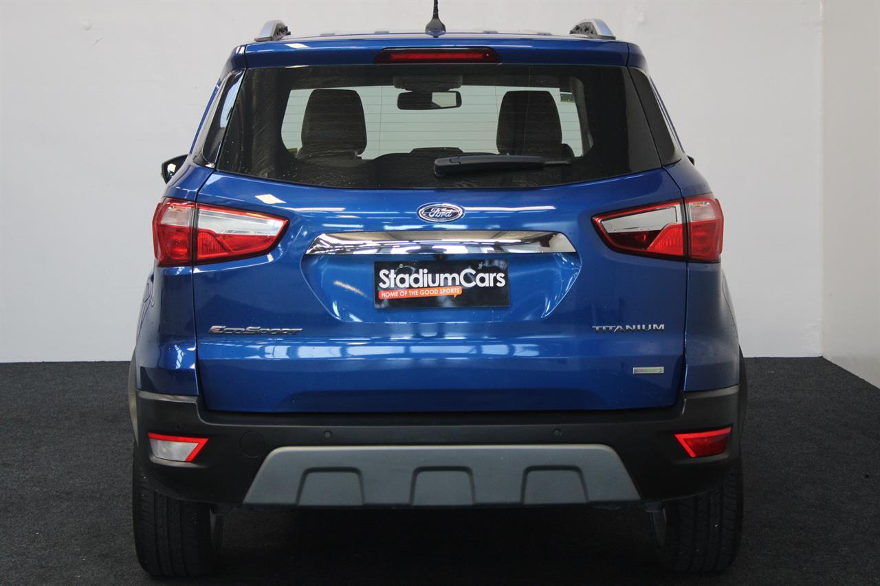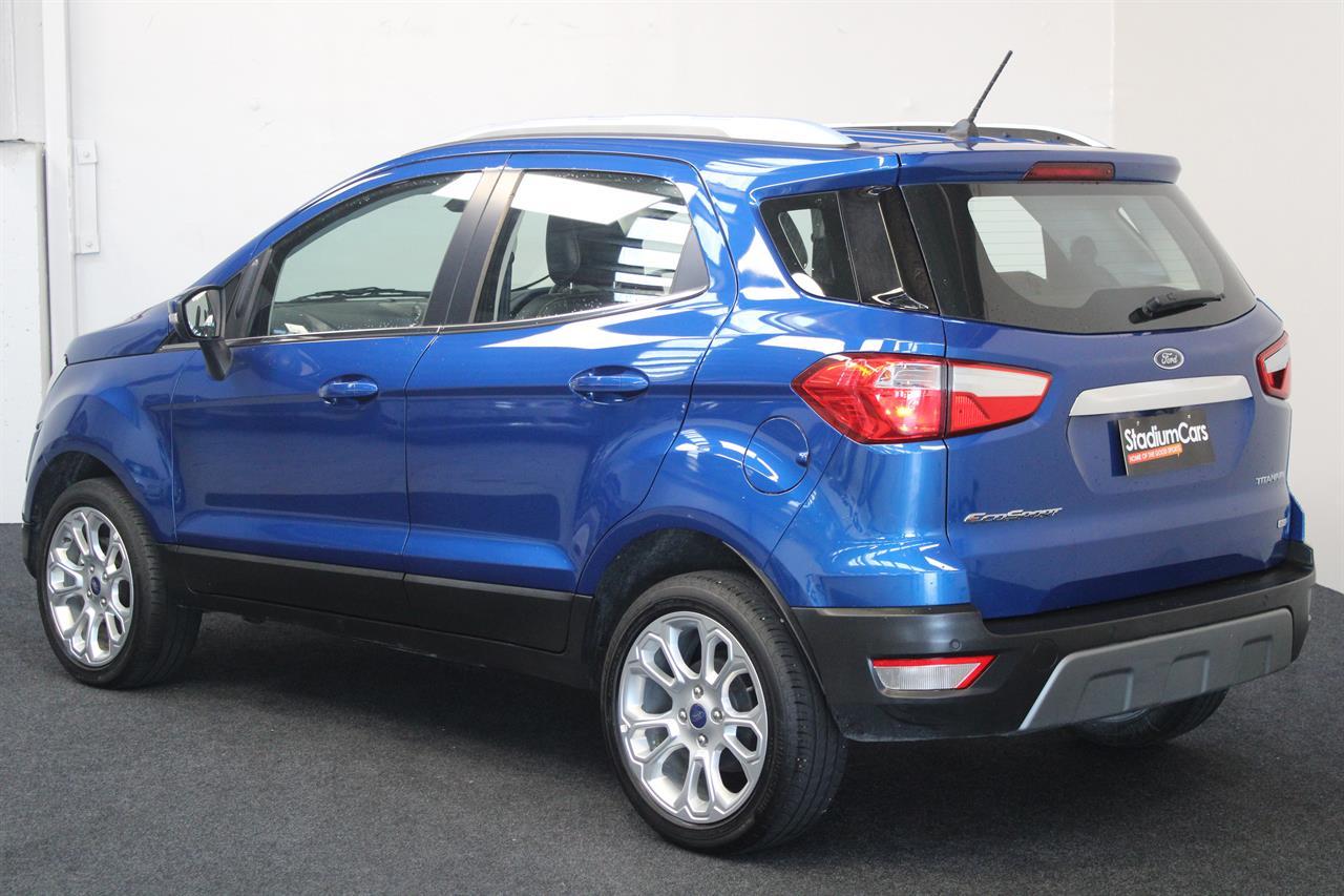 This facelift NZ New 2019 Ford EcoSport Titanium is a Great Fun Sized SUV. A modern & trendy design, it is very stylish as well as being brilliant all-around town. It’s easy to park, economical and along with a higher ride height for safety makes this wee gem a winner. This Ecosport Titanium has a 1.0 litre Turbocharged EcoBoost engine matched to a 6 Speed Auto that is the latest Ford Technology, boasting ample power and frugal fuel consumption to keep running costs low it returns an excellent 6.7L per 100km. It offers a 5 STAR ANCAP Safety Rating with ABS Brakes, ESC, EBD and 7 Airbags including Drivers Knee making this a very safe vehicle. This Titanium model offers a Smart Key with Push Button Start, Auto Climate Air Conditioning, Multi Function Steering Wheel, Cruise Control, Full Leather Trim, Latest Microsoft Sync System with AUX/ USB and Bluetooth, Parking Sensors, Reversing Camera, Paddleshift Sports Mode, Fog Lights, Roof Rails, Rear Spoiler, Alloy Wheels and more Stock # 25386 Everyone in NZ can buy a car from The Good sports at Stadium Cars in Christchurch and Rangiora. Ask about our ‘mates rates’ on freight rates across NZ. One of New Zealand’s Leading car companies - don’t take our word for it, visit our Facebook page for testimonials, see what our customers are saying about us! All of our Vehicles are: * Personally selected, professionally inspected and checked for smoke and other off-putting smells. * Fully Serviced * Come with a FREE mechanical breakdown warranty with ZERO excess for 6 Months. Trade ins welcome. FINANCE FROM NO DEPOSIT All Stadium Cars are available on NO deposit and easy finance with low repayments tailored to suit almost any budget. *Subject to approval. Phone for preapproval on your finance now! For more information on this vehicle, phone our friendly team. Stadium Cars is one of New Zealand's leading car companies with thousands of happy customers nationwide . Our 'Good sports' mentality is built from the motivation to create lifelong advocates. We won't ask you to tell your friends and family about the great experience you had with Stadium Cars, but we're confident you'll want to . Visit our website to see our BuyerScore reviews and see what our customers are saying about us. • TRADE INS WELCOME • FREE DELIVERY SOUTH ISLAND WIDE • FINANCE FROM NO DEPOSIT All Stadium Cars are available on NO deposit and easy finance with low repayments tailored to suit almost any budget. *Subject to approval. Dealer Stock No : 5f2ae4ca-01ed-4b81-bf8c-f03ba All features:Alloy Wheels, Fog Lights, Rear Spoiler 5 Star ANCAP Safety Rating, Balance of New Car Warranty, ESC, NZ New, Paddle Shift, Traction Control, Turbo 7 Airbags, AUX input, Bluetooth, Centre Shoulder Belt in Rear, Child seat anchor points, Climate Air Conditioning, Cruise Control, Electric Mirrors, Electric Windows, High Seating Position, ISOFIX , Leather, Leather Wrapped Steering Wheel, Multi Functional Steering Wheel, Power Steering, Remote Central Locking, Reversing Camera, Smart Key with Push Button Start, Touch Screen Media Interface, Trip Computer, USB input