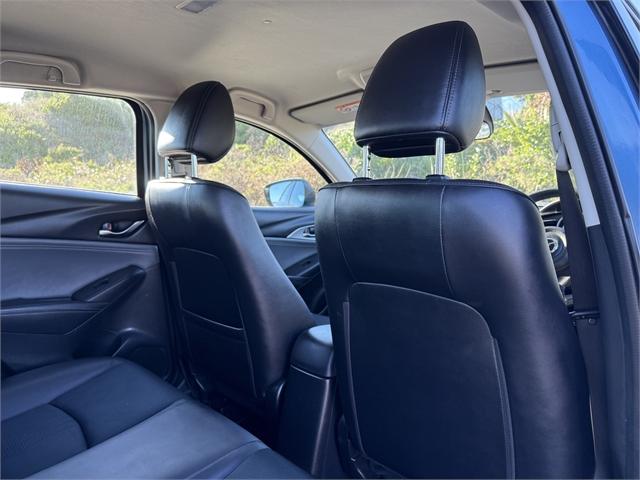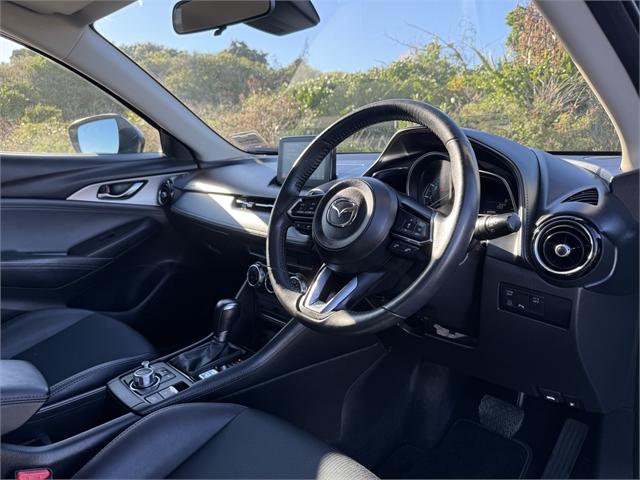 The 2020 Mazda CX-3 GSX in Blue is a NZ NEW compact SUV that combines sporty styling with everyday practicality. Powered by a 2.0L engine producing 110kW and paired with an automatic transmission, it delivers smooth performance and excellent efficiency for both city driving and longer trips. With Front Wheel Drive, the CX-3 offers confident handling and an easy, responsive driving experience. Inside, the CX-3 GSX features a comfortable and well-designed cabin with practical technology and quality finishes. A reversing camera and parking sensors make manoeuvring and parking simple, while half leather interior adds a touch of refinement. The addition of a tow bar further enhances its everyday versatility. Key Features: • Reversing Camera • Parking Sensors • Tow Bar • Half Leather CX3, CX 3, Dealer Stock No : 61829 All features:5 Door, Alloy Wheels, Electric Mirrors, Electric Windows, Remote Central Locking, Reverse Camera, Reverse Sensors, Towbar, Air Conditioning, Half Leather, NZ New, Steering Wheel Controls, Front Wheel Drive