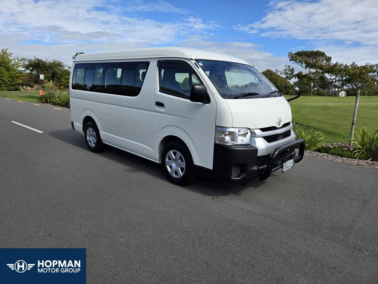 2020 Toyota Hiace 10 Seater - Immaculate condition inside and out. 2700CC VVT-i chain driven petrol engine, 2WD, automatic. Features 2x SRS airbags, front nudge bar, full climate controlled cabin (independent controls front and rear) Features lane departure warning + Toyota Safety Sense for added piece of mind. Includes fresh WOF, service, all on road costs (6 months registration) and 6 month MTA warranty. At **Hopman Motor Group**, our focus is simple: to offer the **best price, quality, and service-guaranteed**. We believe buying a vehicle should be simple, transparent, and stress-free. As a **family-owned and operated business** with over 32 years in the industry, we are proud to offer a personal, no-pressure approach — backed by great service, competitive pricing, and quality vehicles. Here’s why Hopmans could be the right choice for you: - **Family-Owned & Operated:** Over 32 years of trusted service. - **High-Quality Vehicles:** We offer top-quality cars at competitive prices. - **Transparent Pricing:** On-road-costs are included in the price of all vehicles. - **Peace of Mind:** You get a 6-month/10,000km no-excess MTA warranty with each purchase. - **Service:** Vehicles come with a fresh service, oil and filter changed (if applicable) - **No Pressure Sales:** Our friendly and knowledgeable staff are here to help. - **Trade-Ins Made Easy:** We accept trade-ins of all ages and conditions. - **Nationwide Delivery:** Enjoy subsidised delivery to anywhere in New Zealand. - **Vehicle extras available:** Towbars, roof racks, stereos and more, all at discounted pricing **In-house finance** with competitive rates and same-day approvals. Whether you enquire online, over the phone, or in person - we’re happy to help find the best finance option for you. **Extended Mechanical Warranties** are also available at reduced pricing for further peace of mind. Not sure yet? Feel free to reach out to our friendly sales team for more information or check out what previous customers are saying about us online. **Best price, quality, and service guaranteed.** Keywords: Regius ace commuter minibus mini bus minivan zx jumbo widebody wide body mid roof midroof 10 SEAT coach mini van mini bus ZR Dealer Stock No : f0d2d659-49ce-4207-b635-ba9bb All features:ABS, Air Bags, Air Conditioning, Bluetooth, CD Player, Central Locking, Electric Windows, Power Steering, Rear Wiper, Remote Locking, Reversing Camera