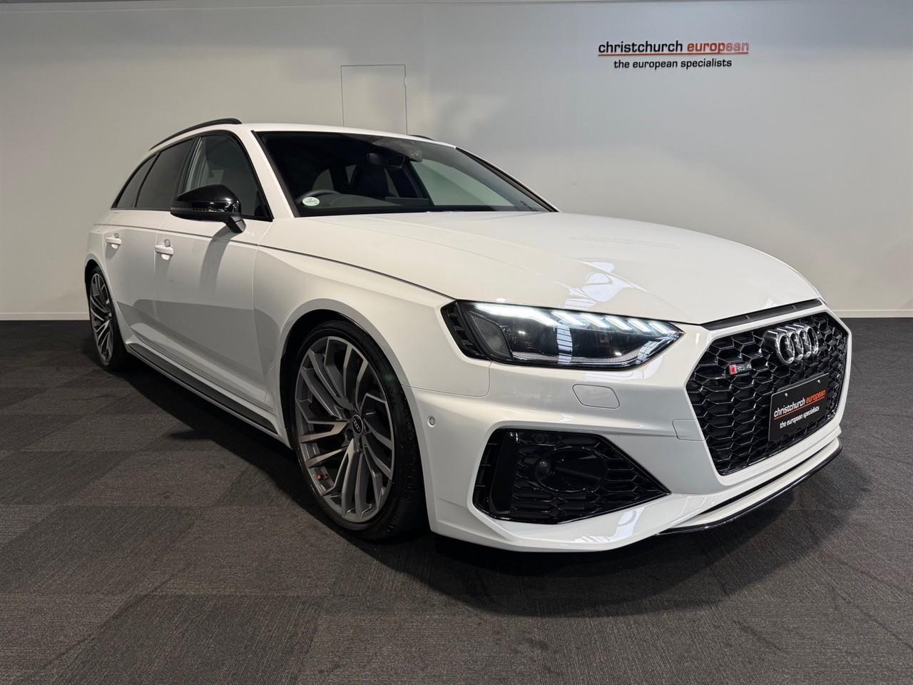2021 Audi RS4 2.9 Turbo Quattro Avant Black Edition Facelift. 2021 MY Facelift in Glacier White Metallic with Factory Super-Sport RS Black Nappa Leather Sports Seats/Rock Grey Stitching, Driving Assistance Package with Adaptive Radar Cruise Control, 331KW 2.9 Twin-Turbo Performance/0-100 in just 4.1 seconds! Audi Sport 5-Segment Spoke Evo Wheels, Red Brake Calipers, Keyless Go, Heated/Electric and Massage Seats, Revised Facelift Widescreen Audi MMI with NZ NAV/Bluetooth Streaming/USB/Car Play/Android Audio and Reverse Camera, RS Drive Select, Heated Steering Wheel, RS Drive Modes, LED Matrix Headlights, Black Styling Plus-Grills/Mirrors/Rails/Enlarged Air Inlets, Electric Tailgate, Virtual Cockpit, LED Interior lighting and much more!. A practical 4WD supercar. Dealer Stock No : 42fca662-6742-4906-9eee-c9d2d All features:Alloys, Central Locking, Electric Mirrors, Face Lift Model, Rear Wiper, Remote Locking, Roof Rails, Spoiler, Sports Exhaust 4WD/4x4, ABS Brakes, Cruise Control, Electric Mirrors, Electric Windows, paddle shift, Traction Control, Turbo Air Bag(s), Air Conditioning, Android Auto, Apple CarPlay, Climate Control, Cruise Control, GPS/Sat Nav, Heated Seats, Leather Seats, Power Steering, Reversing Camera