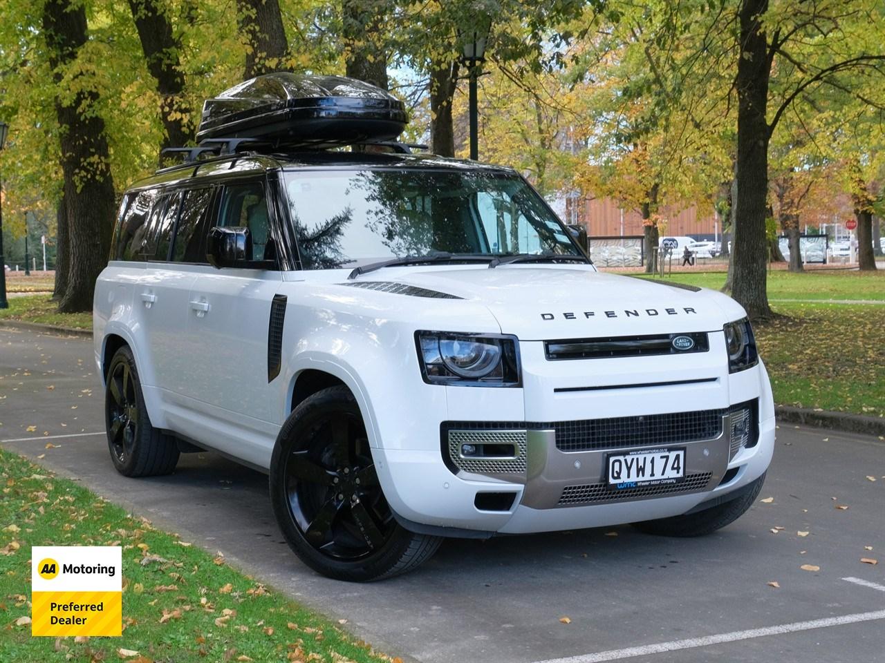 Welcome to Wheeler Motor Company's WMC 'Premium Selection' MASSIVE SALE ON THIS WEEK ONLY! DON'T MISS OUT! ENQUIRE NOW! - Located at 99 Harman Street, Addington - Wheeler Motor Company is Canterbury's first 'AA' Preferred Dealership so you can be fully assured that your new car is simply the best it can be! 2022 Land Rover Defender 130 'First Edition' 8-Seater Capable, adventurous and cool, the Land Rover Defender is perfect for exploring NZ's diverse terrain in comfort and style! A well executed blend of luxury and practicality, the Defender stands out with its chunky modern styling, with this 130 'First Edition' example being set apart with its Blackout Package and Towbar! A great truck whether you're heading off the beaten track or sticking to the tarmac, this Defender is equipped with Wireless Apple CarPlay, a Panoramic Roof, Heated/Ventilated Seats and more! Enquire 'Today' to secure a Test Drive! Request a personalized video demonstration of this car sent directly to your phone, tablet or computer! We understand everyone's lives are super busy so to save you some time just ask and we will bring the car to your home digitally! Financing your new car? Simply get in contact with one of our on-site Finance Consultants, either by phone or using our Online Finance Application. We will contact you within the hour and tailor the best Finance Package suited to your unique situation. This vehicle is priced competitively and includes: -'AA' Certified Dealership -'AA' Appraised Available on Request -2 Year Extended Warranty Protection -Land Rover Dealer Service Completed -North/South Island Delivery Available - Just Ask Us How! -Trade ins/Part Exchange Welcomed -3.0lt Turbo Diesel Engine -Tiptronic Transmission -4WD with Low Range -130 'First Edition' -8 Seats -Removable Towbar with Wiring -22" Factory Alloys -Parking Sensors (Front + Rear) -Panoramic Roof -Radar Cruise Control -Lane Keep Assist -Pre-Crash Safety -BSM -Leather Interior -Heated/Ventilated Seats -Electric Seat Adjustment with Memory -Heated Steering Wheel -Heated Windscreen -Airbags (Front + Curtain) -NZ Navigation -Apple CarPlay/Android Auto -Wireless Phone Charging -Reverse/360 Camera -4-Zone Climate Control Have a trade? Our dedicated buying team will be able to offer you our best price possible! Ring us ‘Today’! Wheeler Motor Company Now Accepts Crypto Payment. Dealer Stock No : 4bcb949c-1a57-4782-a7c7-0e1fb