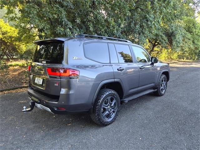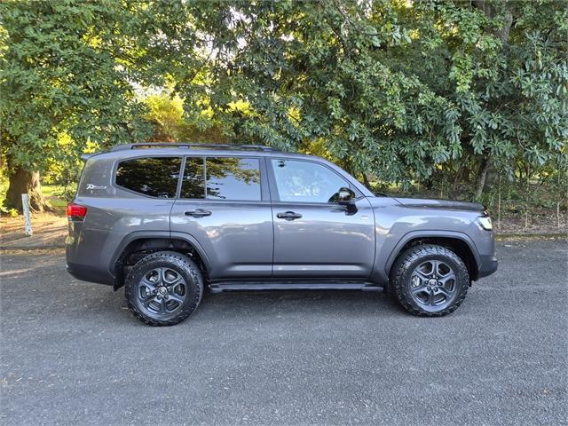 The 2022 Toyota Land Cruiser 300 GR Sport 3.3DT 10AT 4WD (FJAG-NM1) presents as a commanding and highly desirable large SUV, finished in a bold, premium exterior colour that highlights its muscular stance and off-road pedigree. As the flagship GR Sport variant, it features distinctive blacked-out exterior accents, unique GR badging, a bold mesh grille, and model-specific alloy wheels that set it apart from the standard Land Cruiser range. The strong shoulder lines, wide track, and elevated ride height give it an unmistakable road presence, while practical additions such as side steps, roof rails, LED headlights, and front and rear parking sensors enhance both style and usability. Under the bonnet sits Toyota's powerful and refined 3.3-litre twin-turbo diesel V6 engine, paired with a smooth 10-speed automatic transmission and a full-time 4WD system. Designed for serious touring and towing, it offers impressive torque delivery and excellent fuel efficiency for its class. The GR Sport is engineered with performance-focused suspension tuning, front and rear differential locks, Multi-Terrain Select, Crawl Control, and advanced off-road driving modes, making it exceptionally capable in challenging New Zealand conditions. Inside, the cabin blends rugged durability with premium comfort. The five-seat layout offers generous space, supportive sports-styled seats with GR branding, and high-quality finishes throughout. Features typically include leather-accented upholstery, heated and ventilated front seats, a large touchscreen infotainment system with satellite navigation, Apple CarPlay and Android Auto connectivity, a premium sound system, digital instrumentation, dual-zone climate control, keyless entry and push-button start. The rear cargo area is expansive and practical, ideal for family trips, touring setups, or work requirements. Safety is a standout, with Toyota Safety Sense including adaptive cruise control, lane trace assist, blind-spot monitoring, rear cross-traffic alert, autonomous emergency braking, and a comprehensive airbag system. Built on Toyota's latest TNGA-F platform, the 300 Series delivers improved rigidity, reduced weight, and enhanced ride comfort compared to its predecessor. Finance & Protection Packages Available We offer a variety of flexible finance options at competitive rates. You can also choose from: - Mechanical & Electrical Warranties - Comprehensive Insurance Options - Interior & Exterior Protection Packages - Keep your Land Cruiser looking like new! Why Buy from Ashburton Toyota? - Trusted Toyota dealership - Excellent customer service - Quality-assured vehicles - After-sales support you can rely on Click on our logo below to view all of Ashburton Toyota's current listings or visit our website to learn more. - Get in touch today to schedule a viewing or test drive - we're here to help! LandCruiser, Landcruiser, Land cruiser, LandCruiser 200, Land Cruiser 200, LC, Wagon, SUV, Ute Dealer Stock No : AU9470 All features:5 Door, ABS Brakes, Adaptive Cruise Control, AirBags, Forward Collision Alert, Lane Deviation Warning, Parking Sensors, Power Steering, Traction Control, Alloy Wheels, Auto Headlights, Blind Spot Monitor, Electric Mirrors, Electric Windows, Electronic Tailgate, Fog Lights, Adaptive Headlights, Daytime Running Lights, Rain Sensing Wipers, Reverse Camera, Roof Rails, Sunroof, Towbar, Ventilated Seats, Wireless Charging, Android Auto, Apple Car Play, Climate Air 4 Zone, Electric Drivers Seat, Engine Start Button, GPS/Satellite Navigation, Heated Front Seats, Leather Seats, NZ New, Heated Rear Seats, Heated Steering Wheel, Multi-Function Steering Wheel,4WD