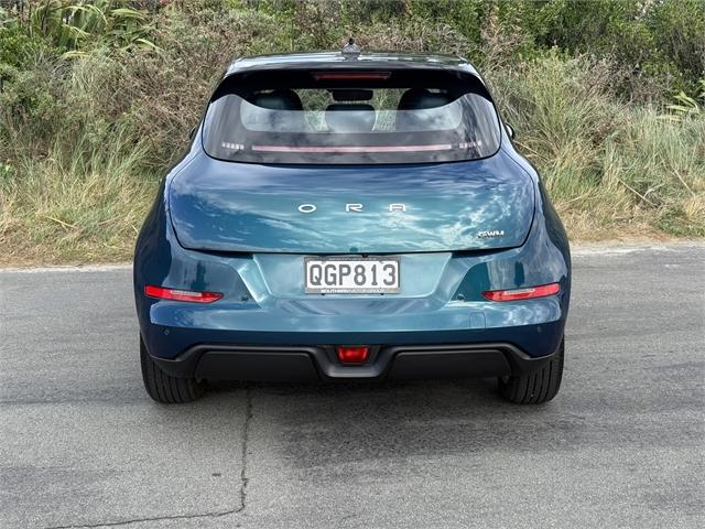 The 2023 GWM Ora Premium in green is a NZ NEW fully electric hatchback that combines modern styling with efficient performance and everyday practicality. Delivering 126kW through its Front Wheel Drive system and paired with an automatic transmission, it offers smooth, quiet driving with responsive acceleration, making it ideal for city commuting and daily use. Inside, the Ora Premium features a modern and well-designed cabin with user-friendly technology and comfort in mind. A reversing camera and parking sensors make manoeuvring and parking easy, while Bluetooth connectivity keeps you connected on the go. With its compact design and electric efficiency, the Ora Premium is a smart choice for those looking to step into electric driving. Key Features: Reversing Camera Parking Sensors Bluetooth GWMORA, Hatchback Dealer Stock No : 61861 All features:5 Door, Alloy Wheels, Electric Mirrors, Electric Windows, Remote Central Locking, Reverse Camera, Reverse Sensors, Air Conditioning, Bluetooth, Half Leather, NZ New, Steering Wheel Controls, Front Wheel Drive