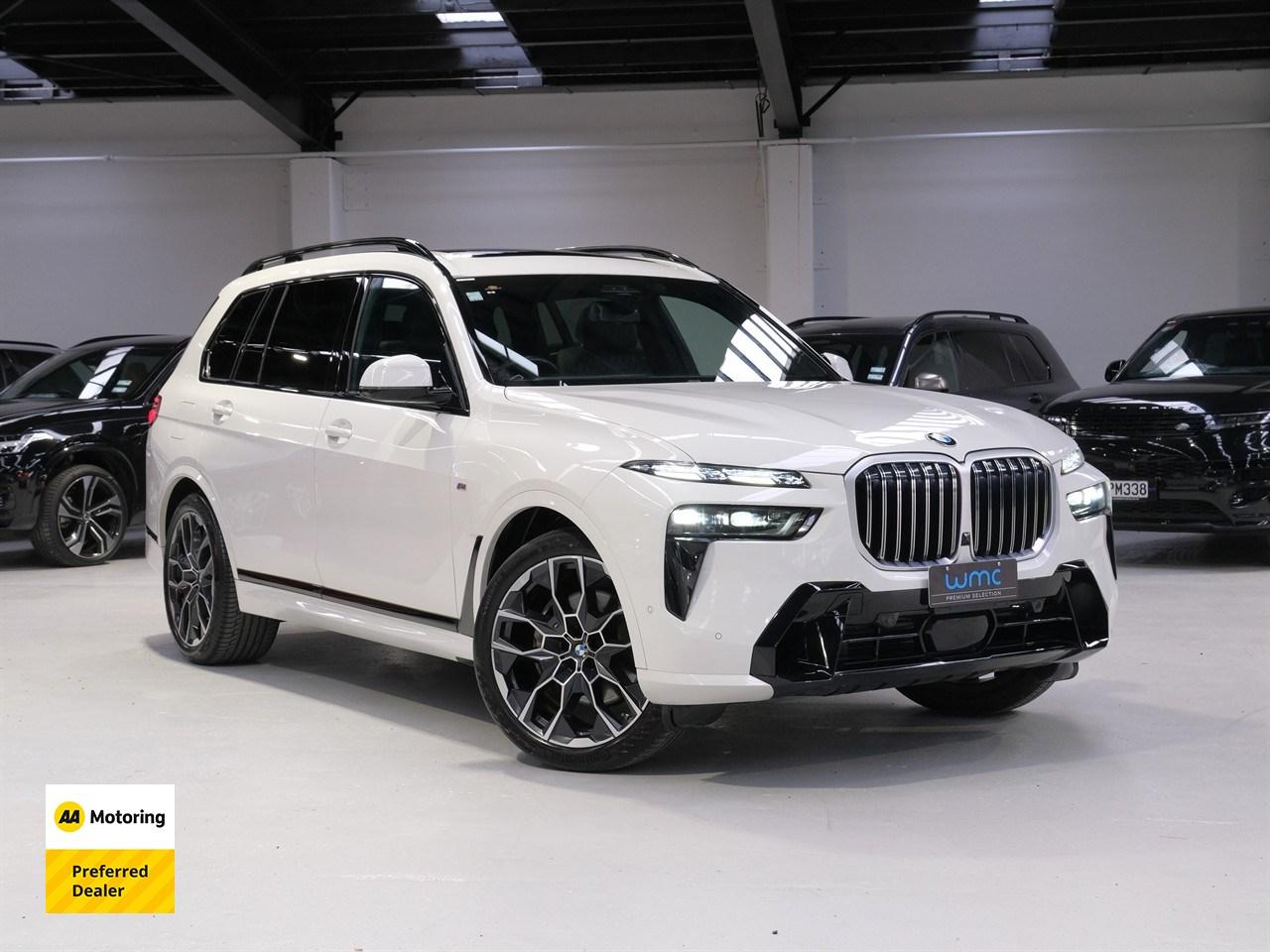 Welcome to WMC’s 'Premium Selection' - Located at 40 Disraeli St, Addington, Christchurch – Wheeler Motor Company is Canterbury's first 'AA' Preferred Dealership so you can be fully assured that your new car is simply the best it can be! 2024 BMW X7 40D xDrive 7-Seater 'M-Sport' Experience the pinnacle of luxury and refinement with the 2024 BMW X7. Its striking, contemporary design commands attention, while the powerful 40D Turbo Diesel Engine delivers effortless performance to satisfy even the most discerning driver. Inside, the meticulously crafted Leather Interior offers spacious seating for 7, complemented by an array of premium features including Heated/Ventilated Seats with Massaging Function, Heated/Cooled Cupholders, a Panoramic Sunroof, and Apple CarPlay integration. Enquire 'Today' to discover the exceptional comfort, performance, and sophistication of the 2024 BMW X7. Request a personalized video demonstration of this car sent directly to your phone, tablet or computer! We understand everyone's lives are super busy so to save you some time just ask and we will bring the car to your home digitally! Financing your new car? Simply get in contact with one of our on-site Finance Consultants, either by phone or using our Online Finance Application. We will contact you within the hour and tailor the best Finance Package suited to your unique situation. This vehicle is priced competitively and includes: -'AA' Certified Dealership -'AA' Appraised Available on Request -New WOF -Registration -Extended Warranty Protection Available -Oil and Filter Service -Nationwide Delivery Available - Just Ask Us How! This can be your new car today! Enquire on our website Wheeler Motors ‘Today’! -Trade ins/Part Exchange Welcomed -3.0lt Turbo Diesel Engine -Tiptronic Gearbox with Paddles -4WD/AWD (xDrive) -40D 'M-Sport' -7 Seater -22" Factory Alloy -Air Suspension -Panoramic Sunroof -Power Tailgate -Adaptive Cruise Control -Pre-Crash Safety -Lane-Assist -Cross Traffic + Blind-Spot Monitor -Exit Warning -Leather Interior -Heated/Ventilated/Massaging Seats (Front) -Power Seat Adjustment (All Seats) -Heated Seats (2nd Row) -Wireless Apple CarPlay -Harman/Kardon Audio -360 Degree Parking Cameras with Sensors -Heated/Cooled Cupholders -Wireless Device Charging -4-Zone Climate Control Have a trade? Our dedicated buying team will be able to offer you our best price possible! Ring us ‘Today’ to discuss your Trade-in! Wheeler Motor Company Now Accepts Crypto Payment. Dealer Stock No : ecd1c308-7c65-442e-bd0f-ed9b1