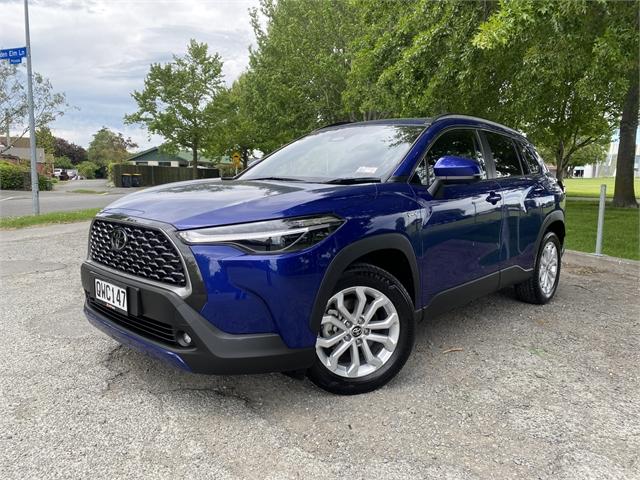 The 2024 Toyota Corolla Cross GXL Hybrid in Blue has already proven to be one of New Zealand's most popular crossover SUVs, ready to get you around safely and efficiently! This NZ New GXL model is the middle spec model in the Corolla Cross Hybrid range sitting between the GX and Limited models. It has brilliant fuel economy with its 2.0L engine and hybrid setup and really stands out from the crowd with it sleek design and efficiency. ''Think of Cross as a smaller yet still-supremely-practical alternative to the RAV4, which is now actually quite a large SUV. Toyota's smaller SUVs, like Yaris Cross and C-HR, are built around style first and passenger space second... (the) Corolla Cross is more conventional looking, genuinely spacious inside for all and sporting a pretty decent and easily accessible 436-litre boot.'' - Driven Car Guide PERFORMANCE 2.0L Petrol Hybrid 96 g/km CO2 Emissions 4L/100 km Fuel Economy Eco, Normal EV, and Sport Driving Modes SAFETY 5-Star ANCAP Safety Parkins Sensors Radar Cruise Control Pre Collision System Lane Alert Auto Headlights Road Sign Assist COMFORT & STYLE Half Leather Interior Apple Carplay and Android Auto Alloy Wheels Electronic Parking Brake Day time running lights Push Button Start Toyota Certified Benefits: You're looking at a Toyota Certified Used Vehicle. Which means, it comes with 24/7 Roadside Assist and a 1 Year/15,000km warranty. Also, continue to service with a Toyota Store and get Toyota Service Protect, and you’ll receive 1 year additional warranty with every qualifying service if your vehicle is under 10 years old or 150,000km. Terms & conditions apply. Visit our website for details. Learn More About This Vehicle: Speak to our friendly team using the enquiry form below. We look forward to hearing from you! Alternatively, arrange a presentation and test drive of this vehicle at a time that best suits you. Transport can be arranged nationwide. Trust ILAM Toyota: We have been helping customers from all over NZ find their Perfect Match since 1987. Your experience just doesn't stop when you collect your new vehicle. Our dedicated team prides itself on its aftersales service also. This includes friendly personalised WOF and Service reminders, free service loan vehicles, pick-up and delivery and an Uber service. Here For Your Convenience 7 Days: Mon-Fri: 8am-5.30pm Sat: 9am-5pm Sun: 10am-4pm Haven't Found What You're Looking For: ILAM Toyota has one of the largest line-ups of pre-loved passenger and commercial Toyotas. With new stock arriving weekly, please let us know if this vehicle isnt your Perfect Match it might just not be listed yet. We have an extensive range of vehicles from economical family cars, hatchbacks, station wagons, SUVs, vans and utes, both NZ new or Imported. Brands focus on safety, fuel efficient hybrid, plug in hybrid (PHEV) and electric (BEV) with 2 keys, service history and owners manual included where possible. Finance / Insurance / Extra Care: Our team of dedicated finance and insurance specialists are on site to help assist you into your new vehicle with a range of Personalised Finance options through Toyota Financial Services. We can also assist with vehicle insurance, extended warranties and service plans to help protect your investment. Dealer Stock No : IU08818 All features:5 Door, NZ New