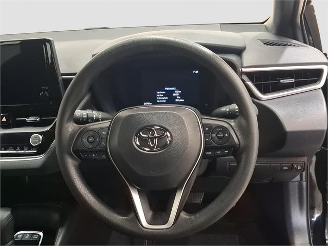 Smart, efficient, and built to make everyday driving effortless, the Corolla GX Hybrid delivers outstanding fuel economy with the reliability Toyota is known for. Perfect for commuting, first-time buyers, or anyone wanting low running costs without sacrificing comfort, it combines smooth hybrid performance with a practical and well-equipped interior. Powered by a 1.8L petrol hybrid engine paired with a seamless CVT automatic transmission driving the front wheels. Key features: - 1.8L petrol hybrid engine with smooth CVT automatic transmission - Touchscreen infotainment with smartphone connectivity - Toyota Safety Sense including adaptive cruise control, lane assist and pre-collision braking - Smart keyless entry with push button start - Reversing camera - LED daytime running lights - Multi-function steering wheel Dealer Stock No : U214455