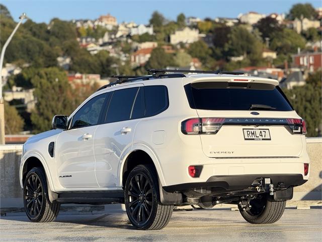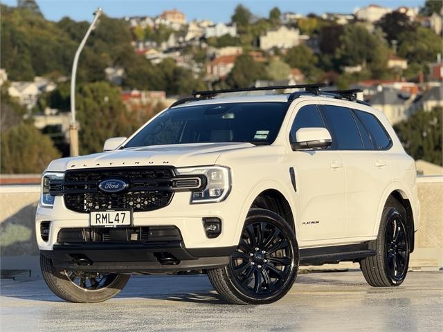 This 2025 Ford Everest Platinum combines premium comfort with serious capability. Powered by a strong 3.0L V6 turbo-diesel engine paired with a smooth 10-speed automatic and intelligent 4WD system, it delivers effortless towing and confident performance on or off the road. Inside, the Platinum offers a refined interior with leather-accented seats, heated and ventilated front seats, a large touchscreen with wireless Apple CarPlay & Android Auto, premium sound system, panoramic roof, and advanced driver assistance features. With seating for seven, impressive towing capability, and Ford's 5-year unlimited kilometre warranty, this Everest is the perfect SUV for family, travel, and adventure. Technical Details: -3.0L V6 Turbo Diesel -184kw/600nm -10 Speed Auto Key Features: -Black Pack -Sliding Sunroof -Cross Bars -Towbar -Side Steps -Premium leather-accented interior -Heated & ventilated front seats -Heated second row seats -12 touchscreen with SYNC infotainment -360 camera -Adaptive cruise control & advanced driver assist features -Premium sound system -Power tailgate -7 Seats -Wireless Apple Carplay & Android Auto -Wireless Charging -Keyless Entry -Heated steering wheel Driveaway In Minutes - Armstrong's can deliver your new vehicle in 60 minutes. *Conditions apply. # The Armstrong Experience - Passionate about cars, driven by people. # Whether you are looking to book a test drive, learn more about finance options, or have a vehicle appraised for trade-in, we can help you with each step along the way. Across New Zealand, we have close to 1,000 vehicles available to purchase. So based on your vehicle needs, we’ll make sure we find the right vehicle that suits your lifestyle and budget. All our vehicles go through a pre-delivery and WOF inspection. Nationwide delivery is also available if you are purchasing from out of town. Get in touch with us today to help you on your car-buying journey. Dealer Stock No : RML47 All features:5 Door, NZ New,4WD