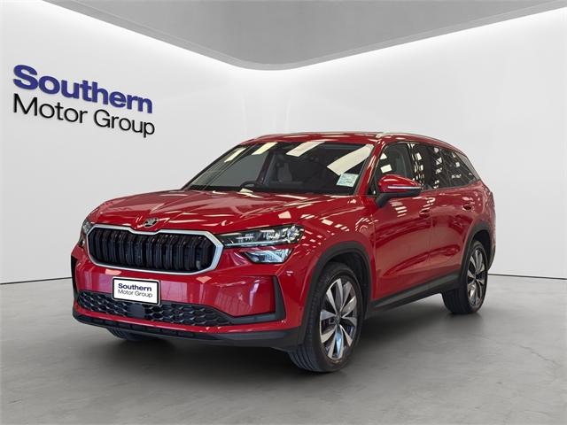 The 2025 Skoda Kodiaq Selection in Red is a NZ NEW spacious and versatile SUV that blends performance with everyday practicality. Powered by a 2.0L Turbo engine producing 142kW and paired with an automatic transmission, it delivers smooth, responsive performance. With Four Wheel Drive, the Kodiaq offers confident handling and stability across a variety of road and weather conditions. Inside, the Kodiaq Selection features a well-appointed cabin with comfortable seating and modern convenience. A reversing camera and parking sensors make manoeuvring and parking easier, while premium touches such as leather interior and an electronic tailgate enhance practicality. Apple CarPlay, Android Auto, and Bluetooth connectivity keep you connected, and the 7 seater configuration adds flexibility for families and passengers. Key Features: • Reversing Camera • Parking Sensors • Electronic Tailgate • Leather Interior • 7 Seater • Apple CarPlay / Android Auto / Bluetooth Dealer Stock No : 14663 All features:5 Door, Turbo, Alloy Wheels, Electric Mirrors, Electric Windows, Electronic Tailgate, Remote Central Locking, Reverse Camera, Reverse Sensors, Air Conditioning, Android Auto, Apple Car Play, Bluetooth, Leather Interior, Leather Seats, NZ New, Steering Wheel Controls,4WD