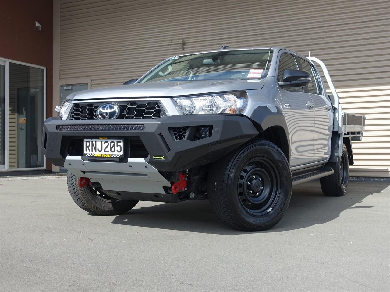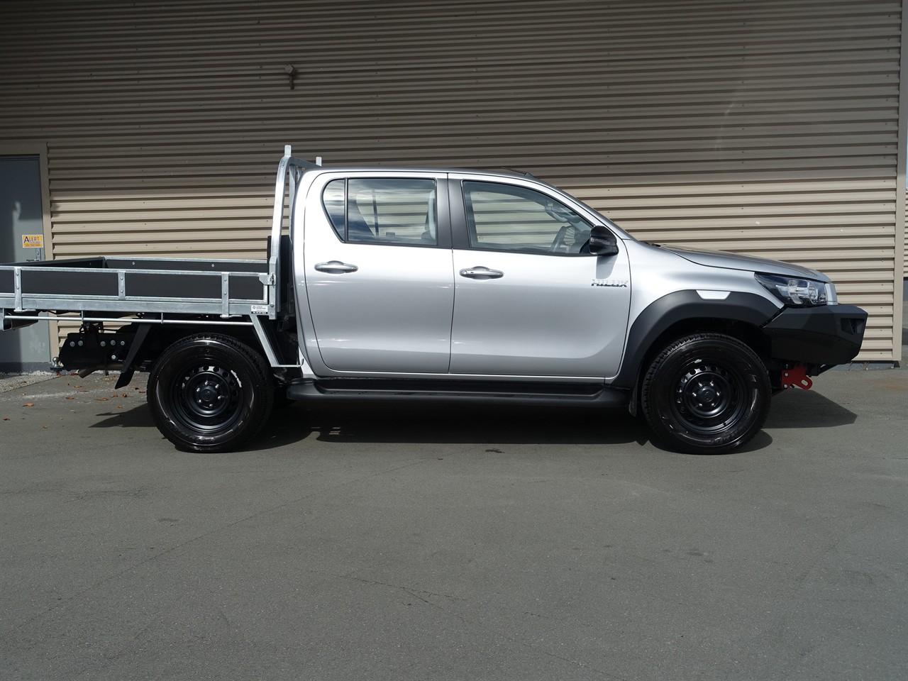 AS NEW!! This Toyota Hilux SR TD Double Cab was first registered in December 2025, and has travelled 11,752 kilometres mainly on trips in Central Otago. It has a 2.7 litre turbocharged diesel engine coupled to a 6-speed automatic transmission, along with high/low ratio 4WD. The Hilux was supplied as a double cab and chassis, fitted with a "Loadmaster" flat-deck with drop-sides, which measures 1.75m long by 1.83m wide. As you would expect, it is in immaculate condition, and is fitted with a tow bar, with 3,500kg braked towing capacity. It comes with 7 airbags, stability/traction control, and MTS (Multi-Terrain Select is an advanced off-road traction control system), along with forward collision mitigation and lane departure warning, contributing to the 5-star safety rating. The Hilux has a radio with Bluetooth, USB, etc and incorporates a rear-view camera. This is a great opportunity to buy a near-new ute at a reduced price. Early enquiries are invited. ############################## All enquiries are welcome and we endeavour to answer promptly. You are invited to call in to our Dunedin premises to inspect our range of imported and NZ new vehicles. -------------------------------------------------- Opening Hours: Monday to Friday: 8:30am - 5:30pm Saturday: 10am - 4pm Sunday: 1pm - 5pm --------------------------------------------------- Enquiries from around New Zealand are very welcome and we can arrange transportation to most parts of New Zealand. -------------------------------------------------- We offer: On-road costs and GST are included in price Certified odometers on all fresh imports Two keys provided Trade-ins considered Flexible Finance Packages Protecta Mechanical Breakdown Insurance ############################### Dealer Stock No : 0b11b707-6afe-44f8-b438-723e5 All features:Electric Mirrors, Nudge Bar, Running Boards, Tow Bar 2.8 litre Turbo/Diesel, ABS Braking, Cruise Control, Downhill Assist, High/Low ratio 4WD, Lane Departure Assist, Power Steering, Stability Control, Traction Control "Smart Key" Operation, 7 Airbags, Bluetooth, Central Locking, Climate Control, Electric Windows, Immobiliser, Keyless Entry, Rear-view Camera