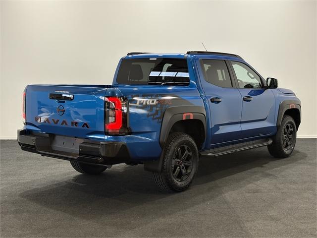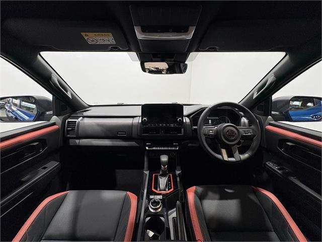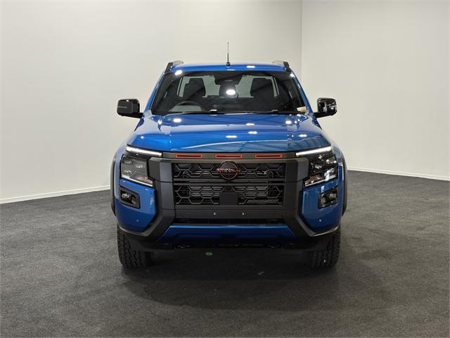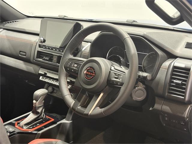 The All-New Nissan Navara is here! Save $3K with introductory Launch Offer!!! Stock available now. Book your test drive today! For over 40 years, Navara has been the ute of choice for kiwis needing a tough, durable and reliable vehicle for work and adventure. Featuring an all-new 2.4L twin turbo engine (150KW/450NM), locally-tuned, model-specific suspension by Premcar, 3.5 ton towing and a host of new comfort and safety tech, the new Navara is ready for anything. Power doesn't come at the expense of economy. Enjoy impressive 4x4 diesel fuel economy with a Combined Cycle fuel consumption of 7.7 Litres/100km(37), meaning fewer stops and longer adventures. The wide-ratio six speed automatic transmission ensures smooth yet rapid gear changes for optimal performance and comfort. Need total control? Engage the manual shift mode to command the gears yourself when tackling demanding off-road tracks or heavy towing. Seven drive & terrain modes: paired with Super 4WD, driving performance and stability is enhanced with the selection of Rock, Sand, Mud, Gravel, Snow, Normal & Eco modes. Each mode has been tuned to optimise engine, transmission, steering Take it all with you. All variants in the all-new Navara range offer a benchmark 3,500kg maximum braked towing capacity. With up to one tonne payload across the range, the Navara is engineered to handle massive loads. Whether it's heavy tools, equipment or a bespoke canopy and camping gear, you have the robust capacity to carry what you need without compromise. With five-star ANCAP safety rating (tested 2024) you can be sure your safety has been tested to the highest standards, complimented by a full suite of advanced active safety features, including: All models are available with Premcar tuned suspension?²? [Available as an option at additional cost for the SL grade] Every model comes with LED headlamps and rear combination lamps. Towbar, Sports Bar, Tubliner and Tailgate Assist are optional accessories and are available at additional cost. Dealer Stock No : 44623 All features:3.5 Ton towing, 17" Alloys & All terrain tyres, Custom suspension & handling tune by Premcar, leather interior with custom Lava Red PRO-4X accents, heated front seats and more...<br/>9.0" Touchscreen<br/>Wireless Apple CarPlay & Wired Android Auto<br/>Dual Bluetooth Phone & Audio Streaming (2 phones can be actively paired)<br/>Pull out cup holders<br/>2 x 12V Outlet (Instrument Panel / Rear of Centre Console)<br/>1 x USB-A, 1x USB-C (data and charge) - Instrument Panel<br/>1 x USB-A / 1 x USB-C (charge only) - Rear of Centre Console<br/>Satellite Navigation<br/>Wireless Smartphone Charger<br/>Around View Monitor with Moving Object Detection (MOD)<br/>8 Airbags (Front, Side Seat, Curtain, Driver Knee, Front Row Centre)<br/>Reverse Parking Camera<br/>Front & Rear Parking Sensors<br/>Intelligent Forward Collision Warning (IFCW)<br/>Intelligent Emergency Braking (IEB)<br/>Intelligent Driver Alert (IDA)<br/>Lane Departure Warning (LDW)<br/>Intelligent Lane Intervention (ILI)<br/>Blind Spot Warning (BSW)<br/>Emergency Lane Assist (ELA)<br/>Rear Cross Traffic Alert (RCTA)<br/>Tyre Pressure Monitoring System (TPMS)<br/>Central Locking (Speed Sensing with Anti-Lock Out)<br/>Immobiliser & Alarm<br/>Lockable Fuel Filler Door<br/>Front Cross Traffic Alert (FCTA)<br/>Traffic Sign Recognition (TSR)<br/>Secondary Collision Mitigation Braking<br/>Trailer Sway Control<br/>Hill Descent Control (HDC)<br/>Terrain Mode Selector (Normal, Eco, Gravel, Snow, Mud, Sand & Rock)<br/>Rear Electronic Differential Lock<br/>Steel underbody protector (below radiator)<br/>Full Size Spare Wheel - Matching Allo<br/>Intelligent Cruise Control<br/>Power adjustable, power folding, heated door mirrors<br/>Power Windows (Auto Up/Down for Driver)<br/>High Beam Assist (HBA)<br/>Automatic Headlights<br/>Automatic Rain Sensing Wipers