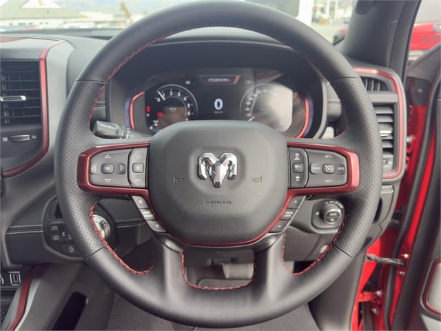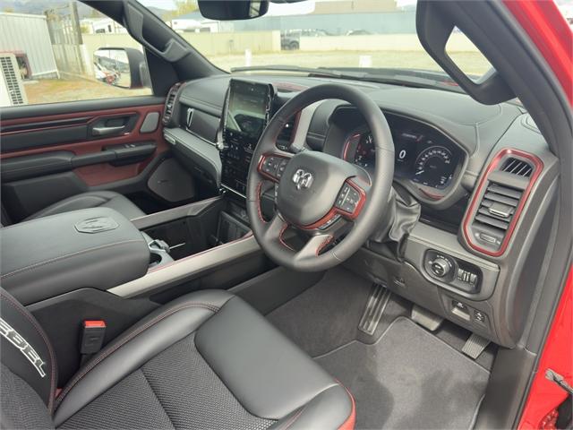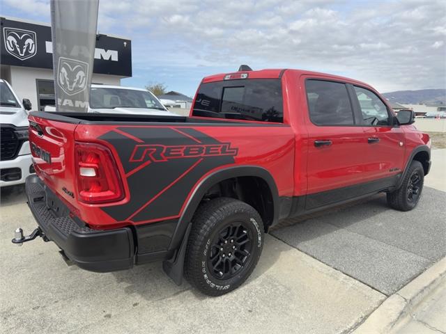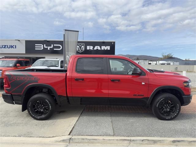 Central Otago Motor Group Cromwell Introduces the 2025 RAM 1500 Rebel Kiwi Ute buyers don't just want tough; they want uncompromising capability. The Ram 1500 Rebel delivers with black-accented tough-truck styling, a heavy-duty payload, increased ground clearance, off-road suspension and tyres, and a 4.5-tonne towing capacity. RAM 1500 Rebel exclusive features include: - One-inch suspension lift (Bilstein off-road suspension) - All-terrain tyres (Falken Wildpeak 275/65/18) - Underbody skid plates - Full-size rear ute tub (no RamBox) delivers a larger cargo area - 'Power Bulge' bonnet - Powder-coated front and rear steel bumpers - Fender flares - Unique 18-inch wheel design - Unique red-and-black interior trim combination - Rebel stitching on the front seats - Rebel badge on the tailgate RAM 1500 Standard Features include: - Twin-turbo in-line six-cylinder Hurricane engine with 313kW and 635Nm - Eight-speed automatic - All-wheel-drive or two-wheel-drive - Five driving modes (auto, sport, tow, snow, off-road) - 98-litre fuel tank - Redesigned LED headlights - Redesigned tail-lights - Redesigned front fascia - Redesigned 20-inch alloy wheels (275/55/20 tyres) - 19-speaker Harmon Kardon sound system - Dual pane panoramic sunroof - 14.4-inch infotainment screen - 10.25-inch front passenger infotainment touchscreen - Dual wireless phone charging - Wireless and wired Apple CarPlay and Android Auto - 3-year/100,000km RAM Factory Warranty Come check it out at #11 Murray Terrace, Central Otago Motor Group Cromwell! Dealer Stock No : RA740959 All features:NZ New,4WD